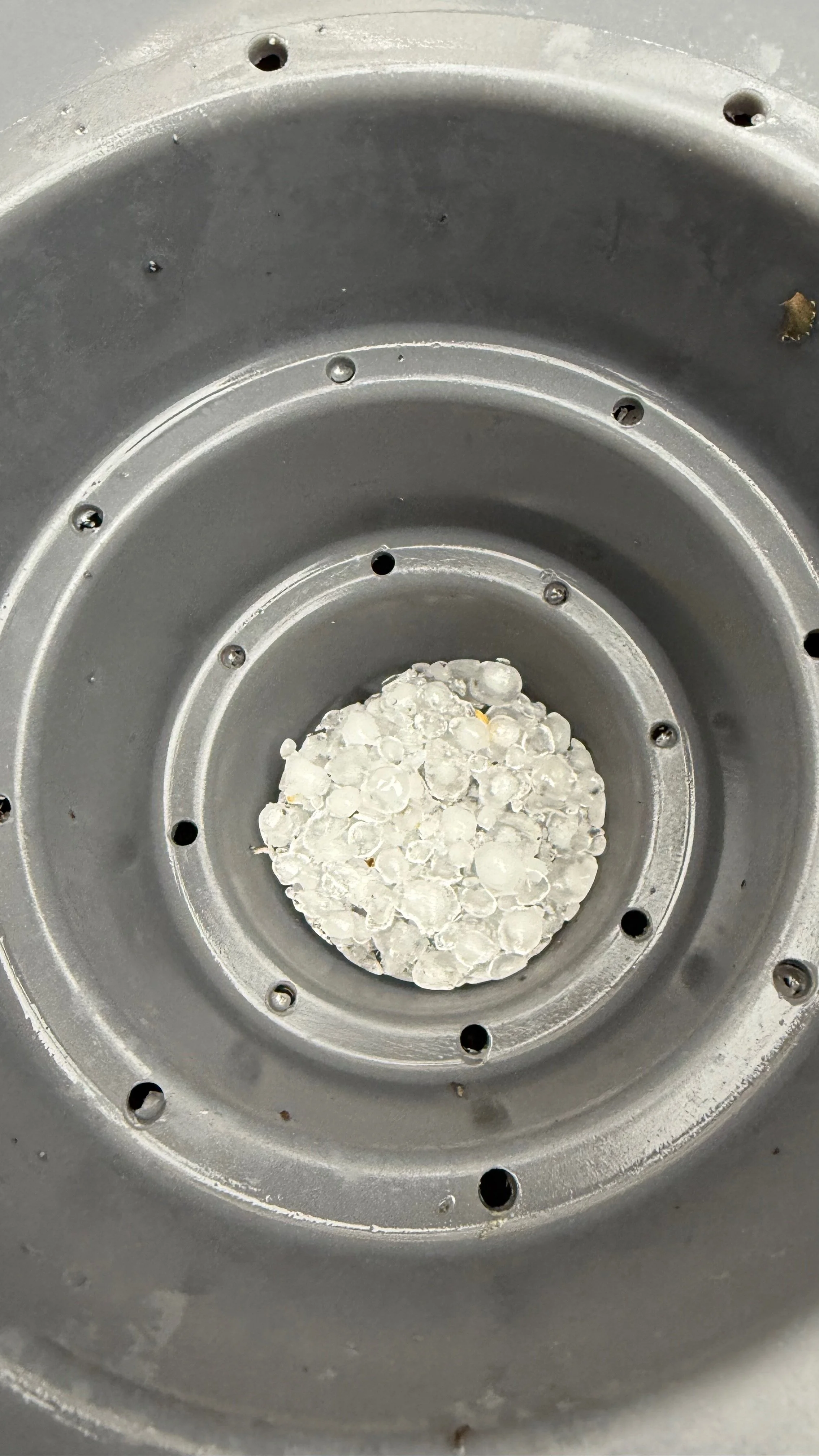 The TruDrop planters have a deep well that when filled with soil interfaces with the water well. Here it’s filled with hail!