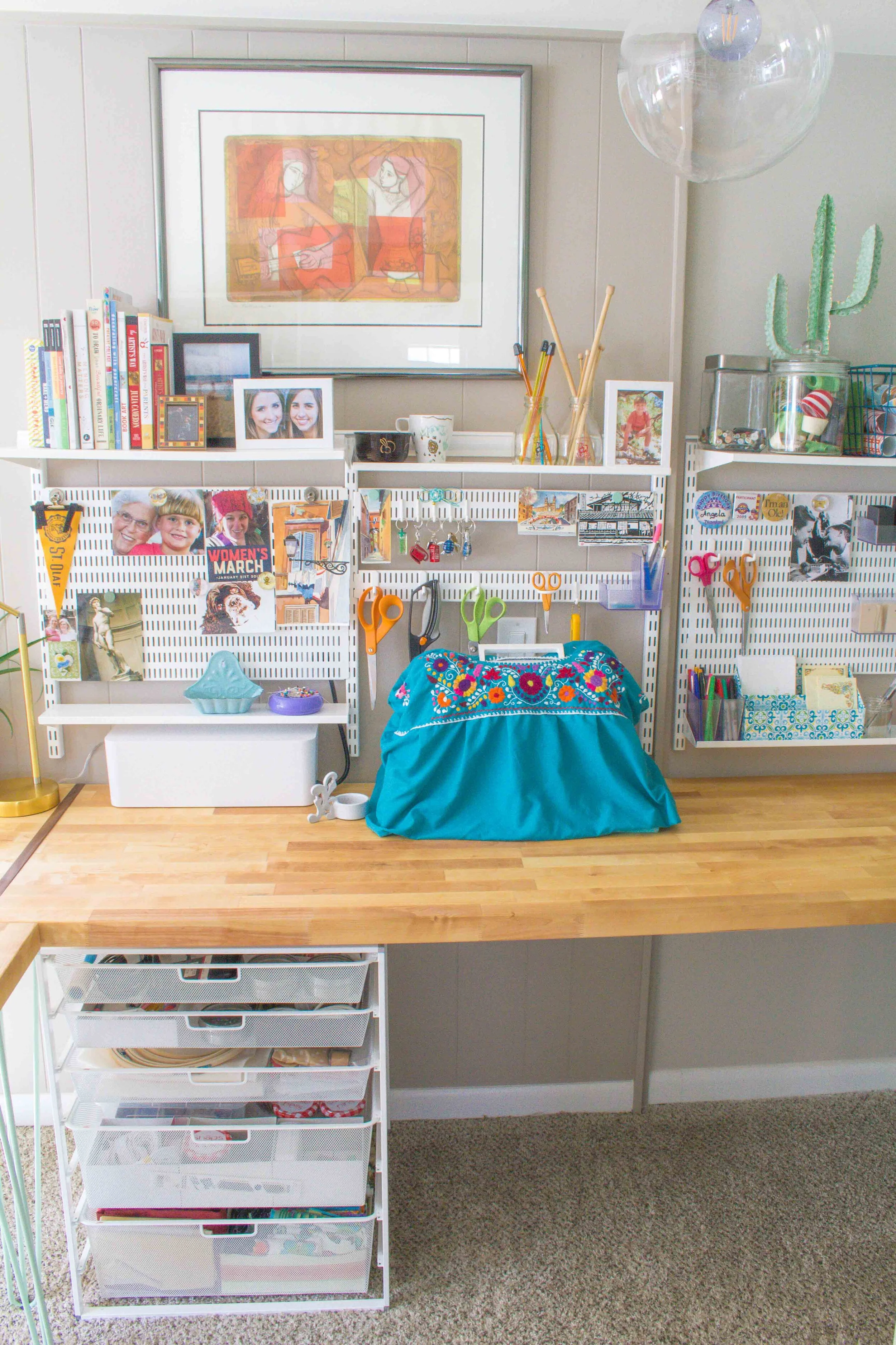 I used another CableBox at the sewing station. It also contains a powerstrip and holds the power cord for the sewing machine as well as the task lamp keeping it all neat and tidy.