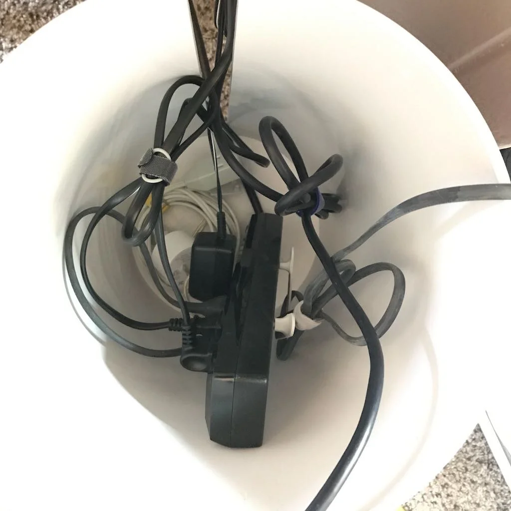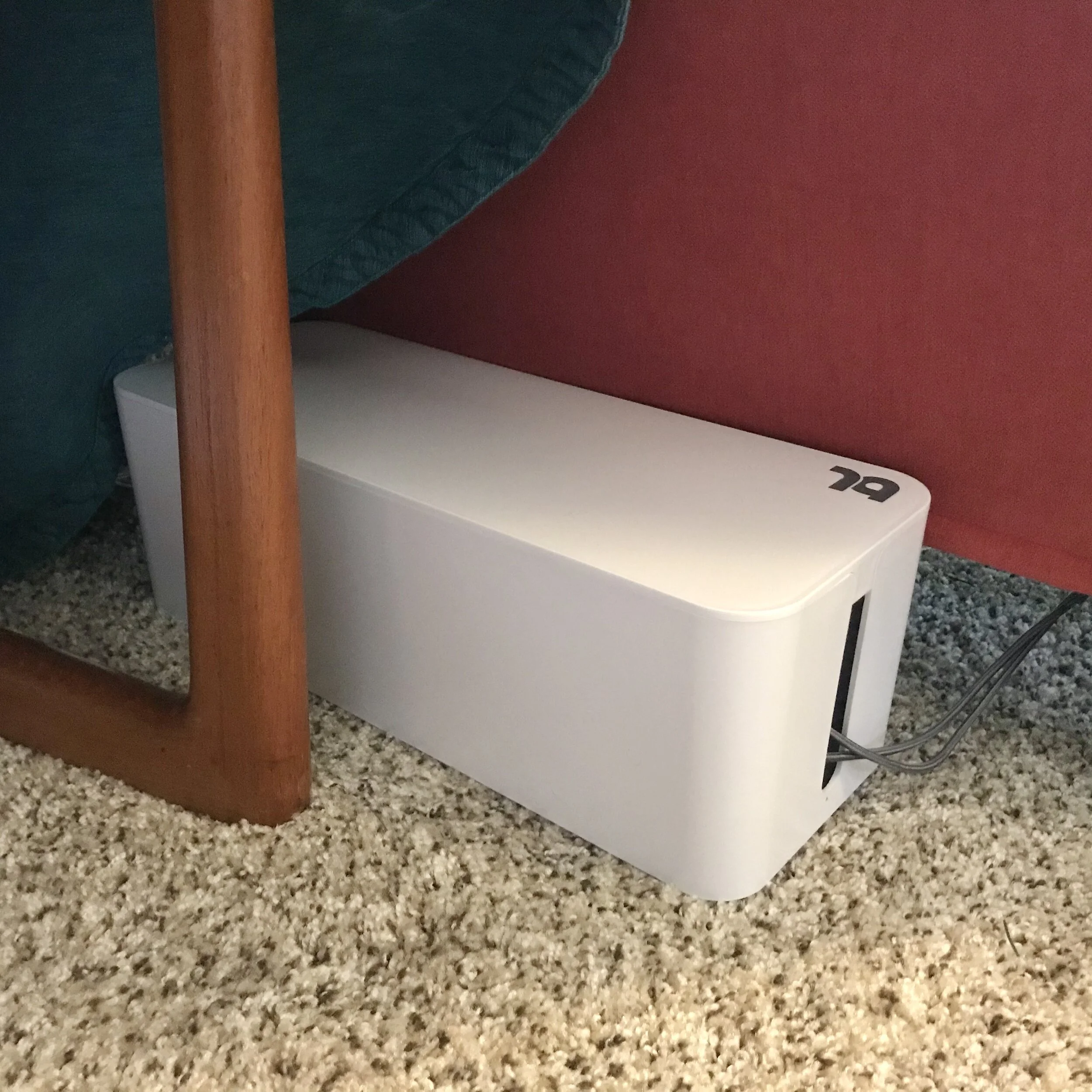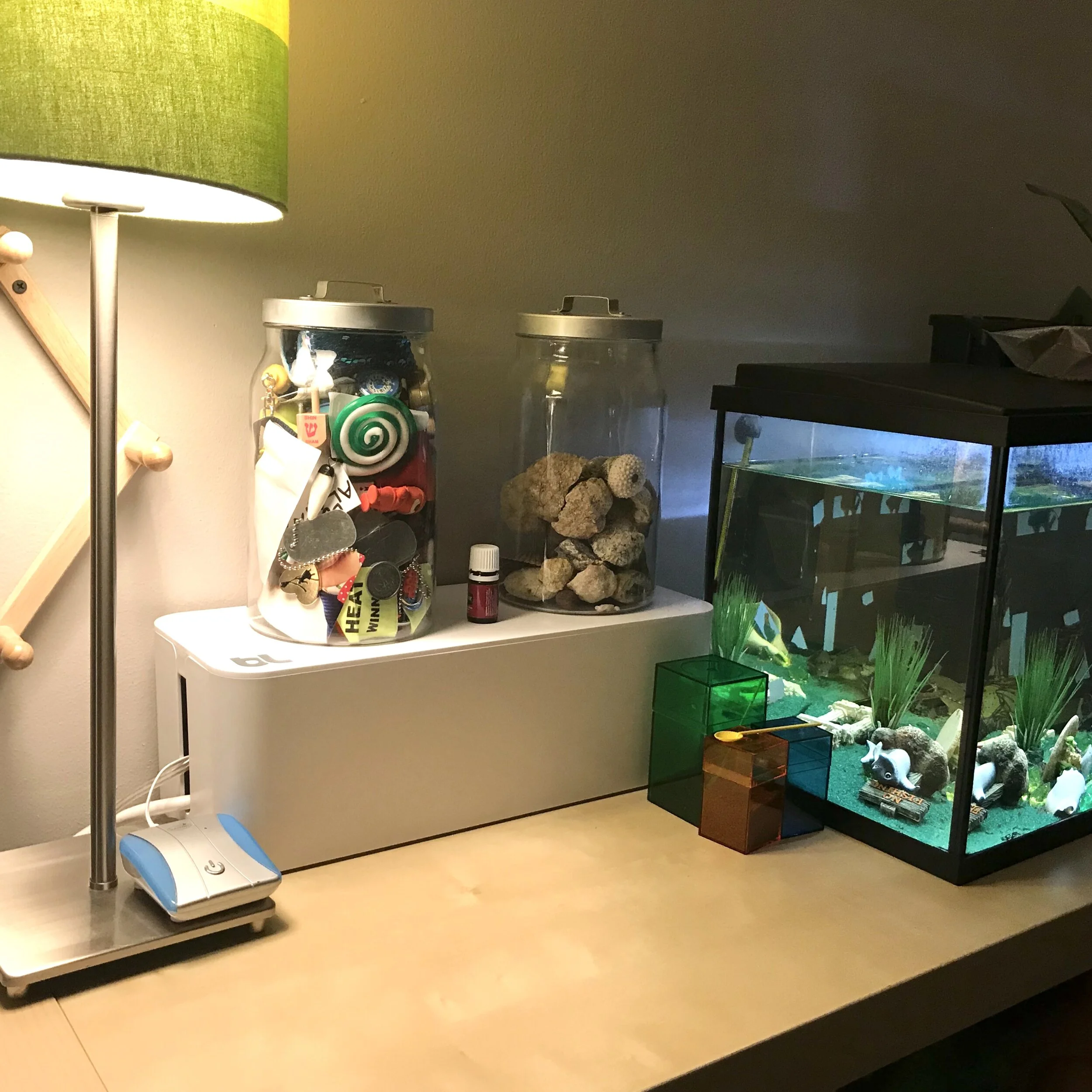 In our child’s room, a CableBox keeps the cords and cables for the aquarium, lamps, and chargers neat and tidy and out of the way.