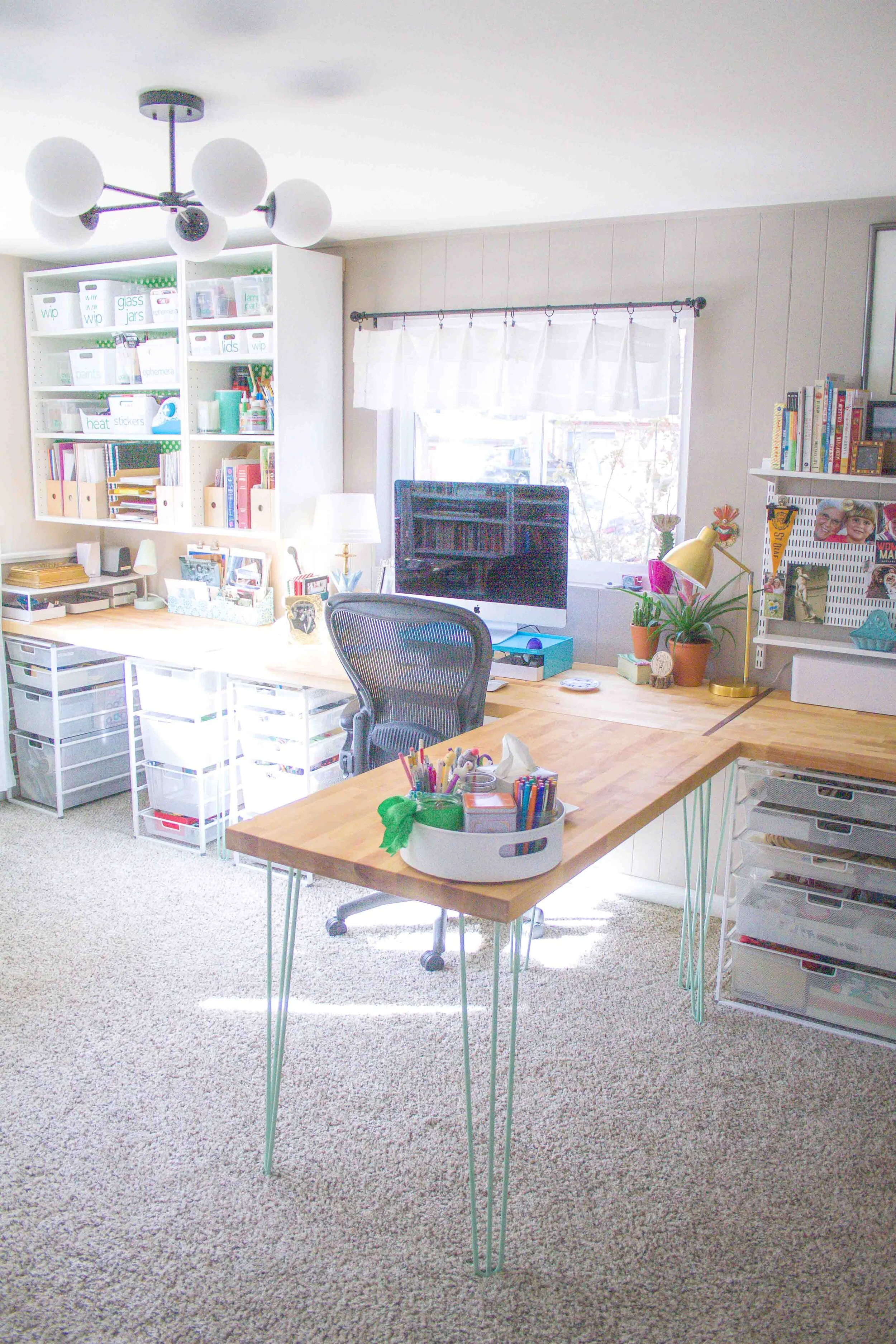 As I said before, I first used bluelounge’s products in my Workroom — my home office, sewing room, library, and art studio. When I redid this room as part of the Fall 2019 One Room Challenge, I purchased some CableBoxes as well as CableDrops to corral all of the cords at my computer area as well as in my sewing station. I was so impressed with how well the products worked — and how nice they looked. You can read more about how I tamed my workroom at the DIY Workroom Makeover page.