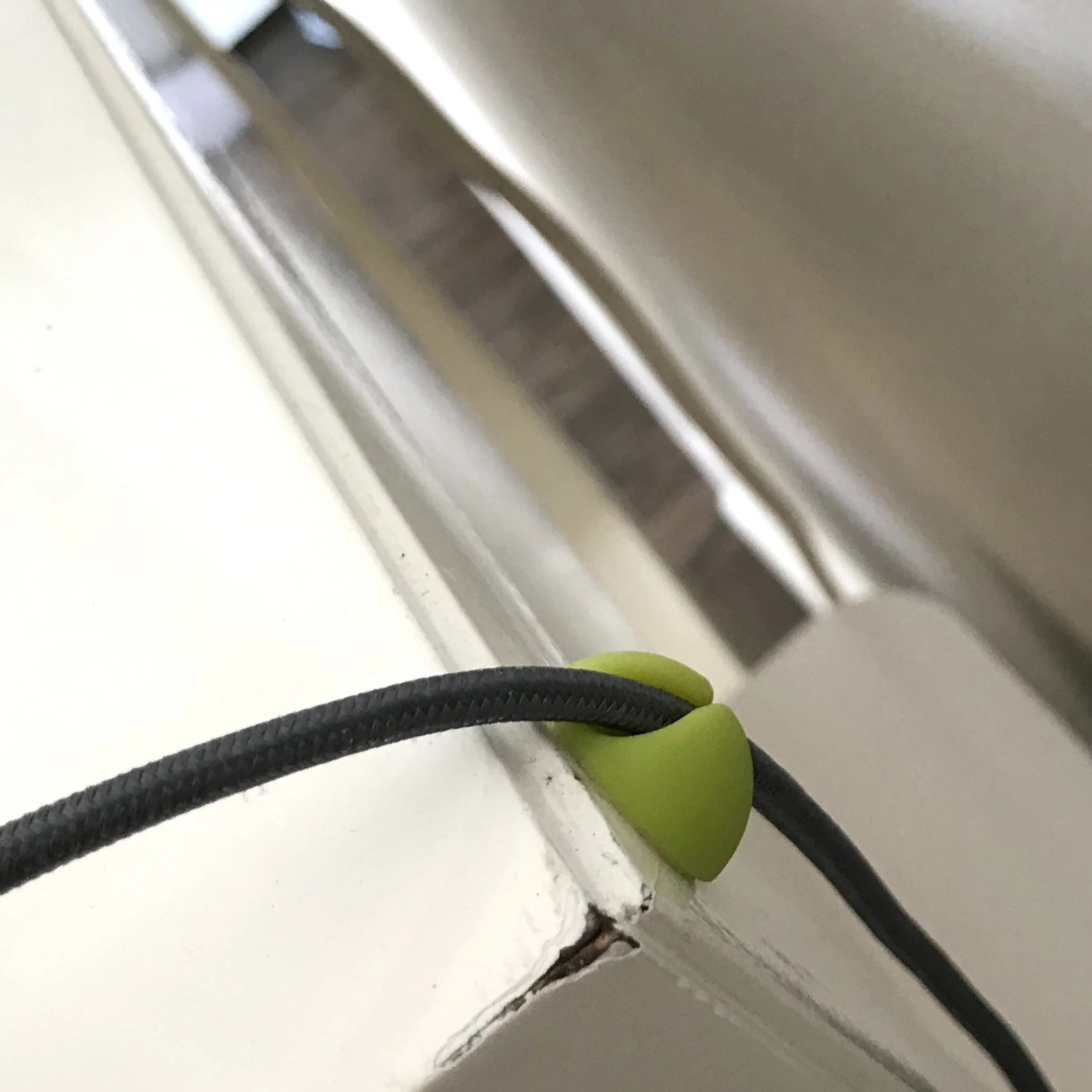 Bluelounge sent me a box of their cable management tools which I deployed in a variety of ways. To make it easier, I put all of these items into a bin which I carried from place to place as I worked through the house. Then I had every tool I could possibly need as I worked. I can’t recommend one solution over another, because they all have their individual uses.