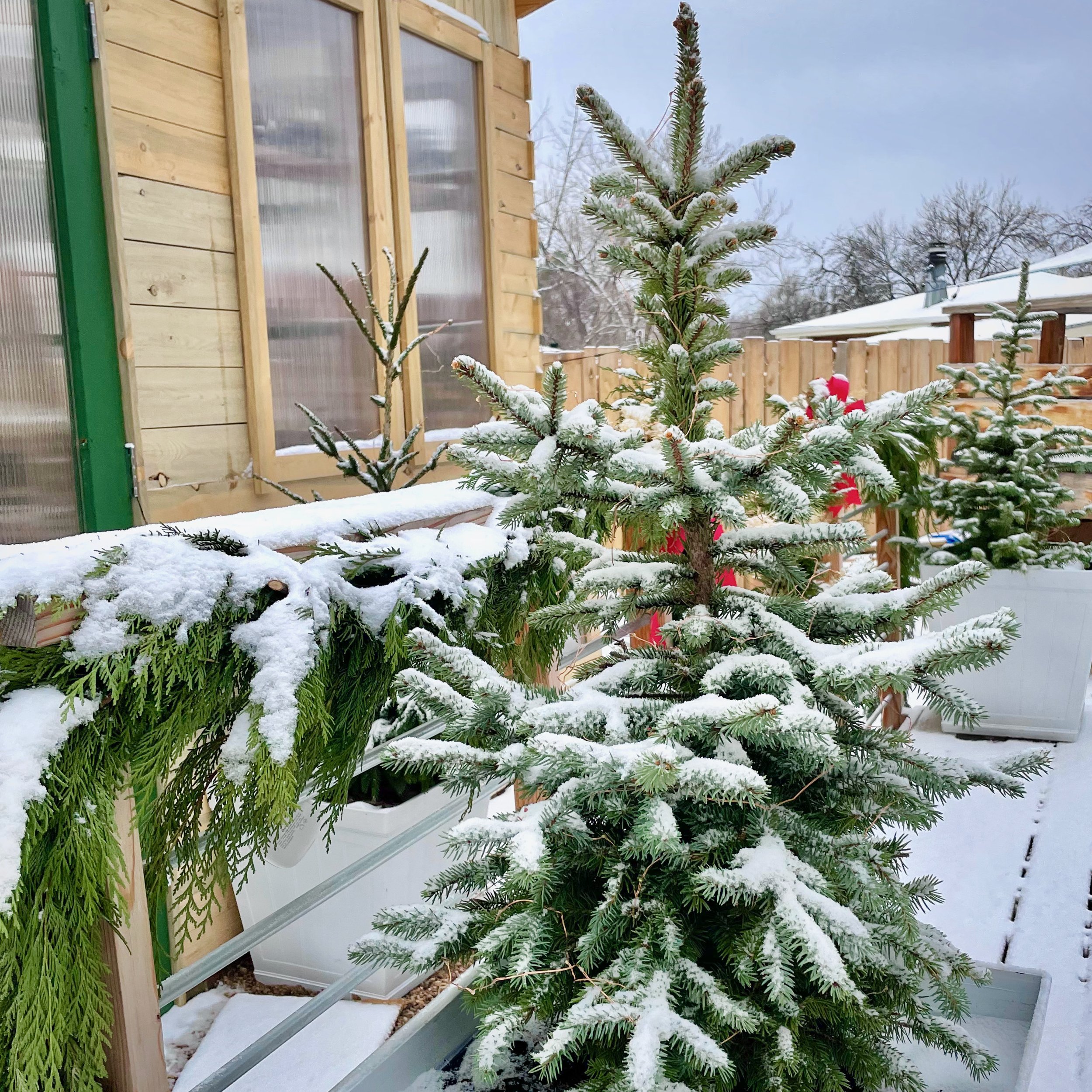 As you are considering outdoor decorations for your home or greenhouse, keep it simple. Think about what your own garden can supply. And use natural elements like greens and evergreen trees to create your own winter wonderland.