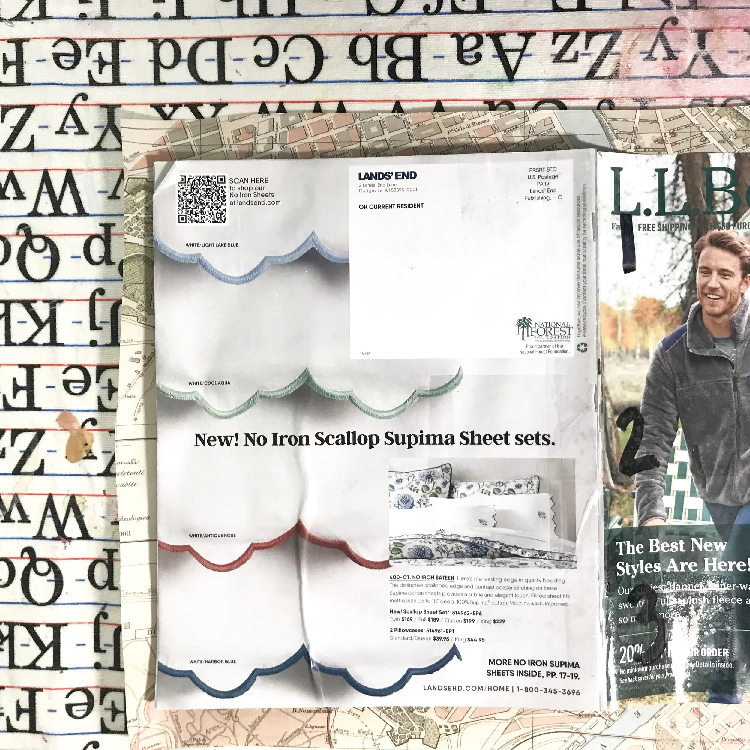 Because the paper in a catalog isn’t very high quality, I like to glue pages together to strengthen each page. This also makes for fewer pages in each journal.