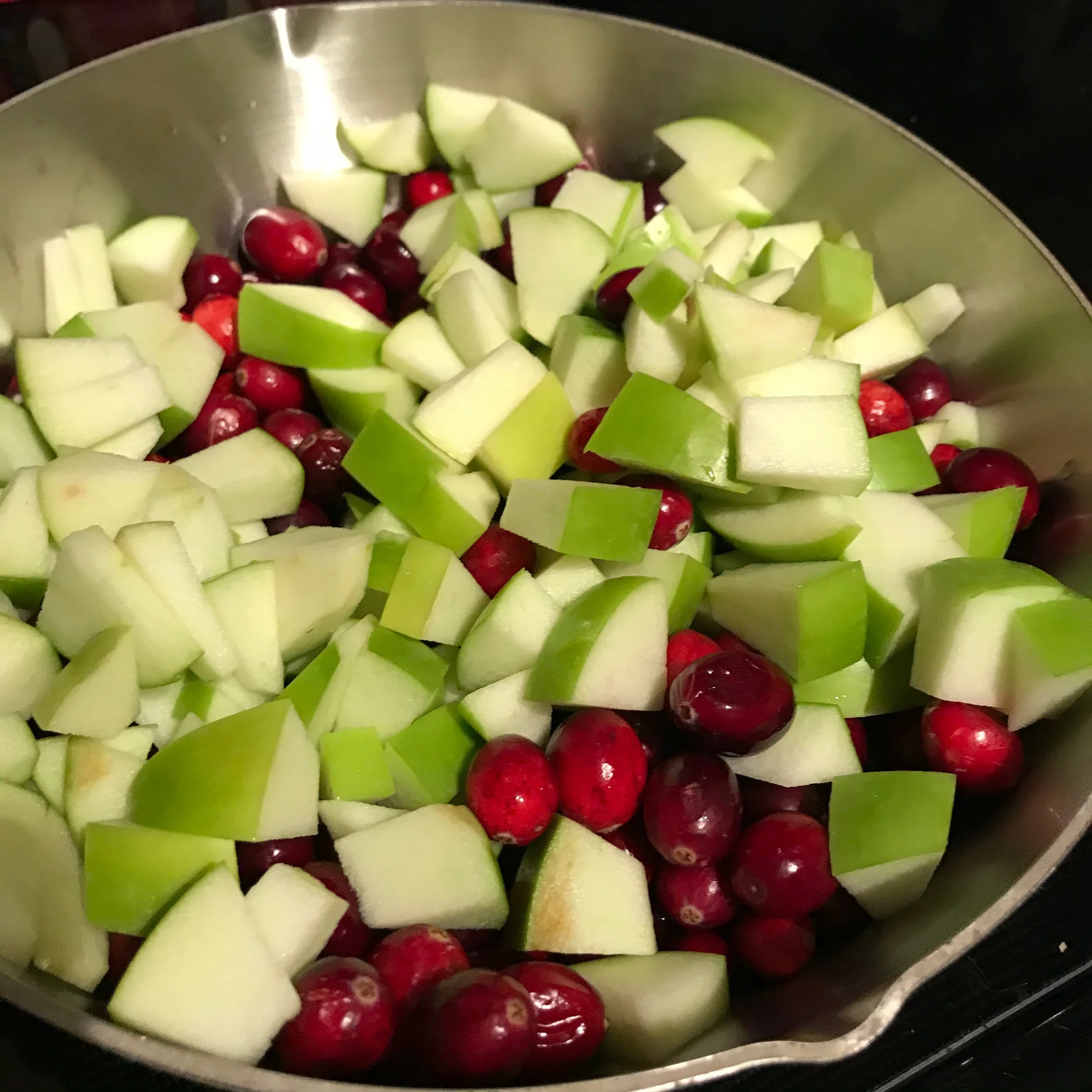 Chop the Granny Smith apples into small pieces. There’s no need to peel them.