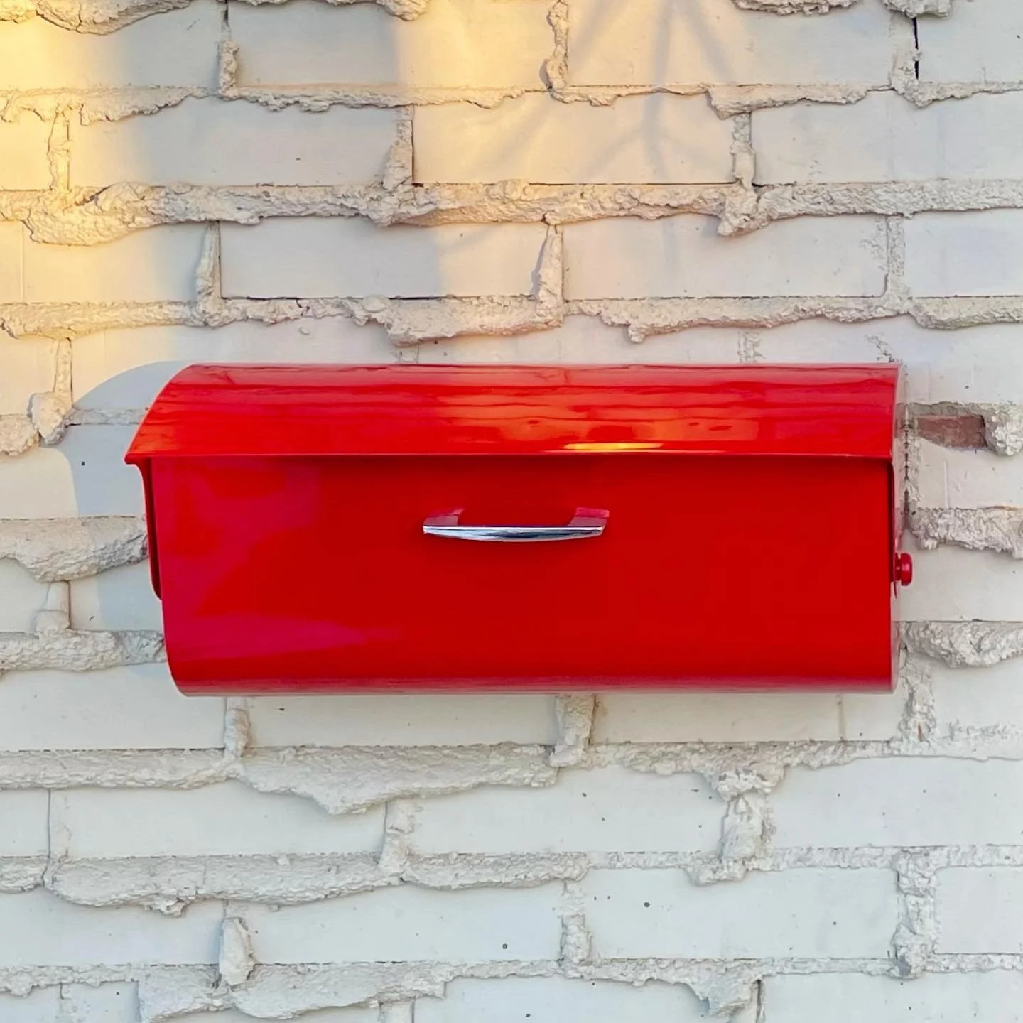 I gave our mailbox a makeover, too. I am fairly certain it is original to our home. It's lovely, heavy steel. But it had been painted a few times and was a drab gray-green with a Federal-style pull on the front. I wanted less utilitarian and more 1958 Ford Thunderbird. So, I took it to a local shop which sandblasted all of the paint layers and rust away. Then they powder-coated it in cherry red. I added a new chrome pull, and now it would be at home at the Back to the 50's car show! It’s right under one of the new light fixtures, too, so even at night the red pops.