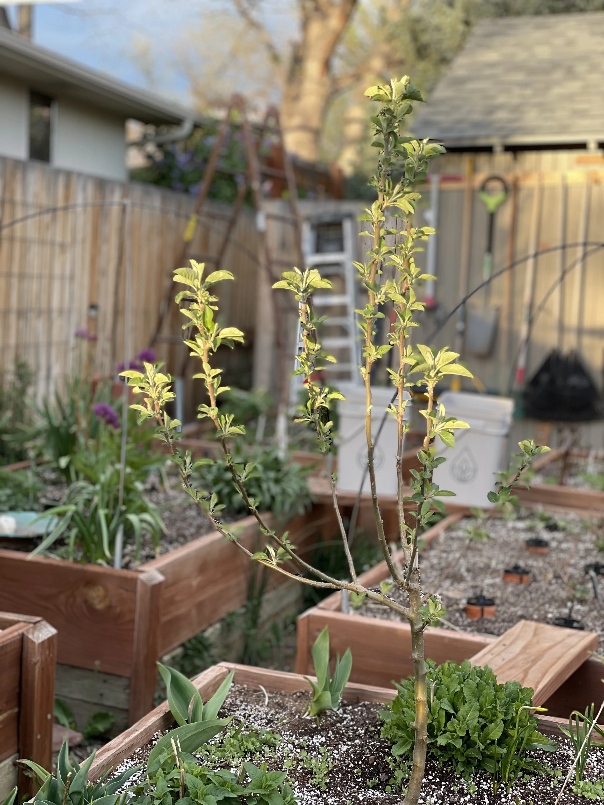I wouldn't have thought that I could fit 16 fruit trees into my little yard, but then I remembered Ann Ralph's book, Grow a Little Fruit Tree. I heard Ms. Ralph speak years ago when we lived in Sacramento, California. She is a Bay Area author and gardener, and she is one of the people behind the Backyard Orchard Culture movement – advocating that everyone can and should have fruit trees in their yards. AND by keeping the trees small – and I do mean very small – that makes them more productive and more manageable.
