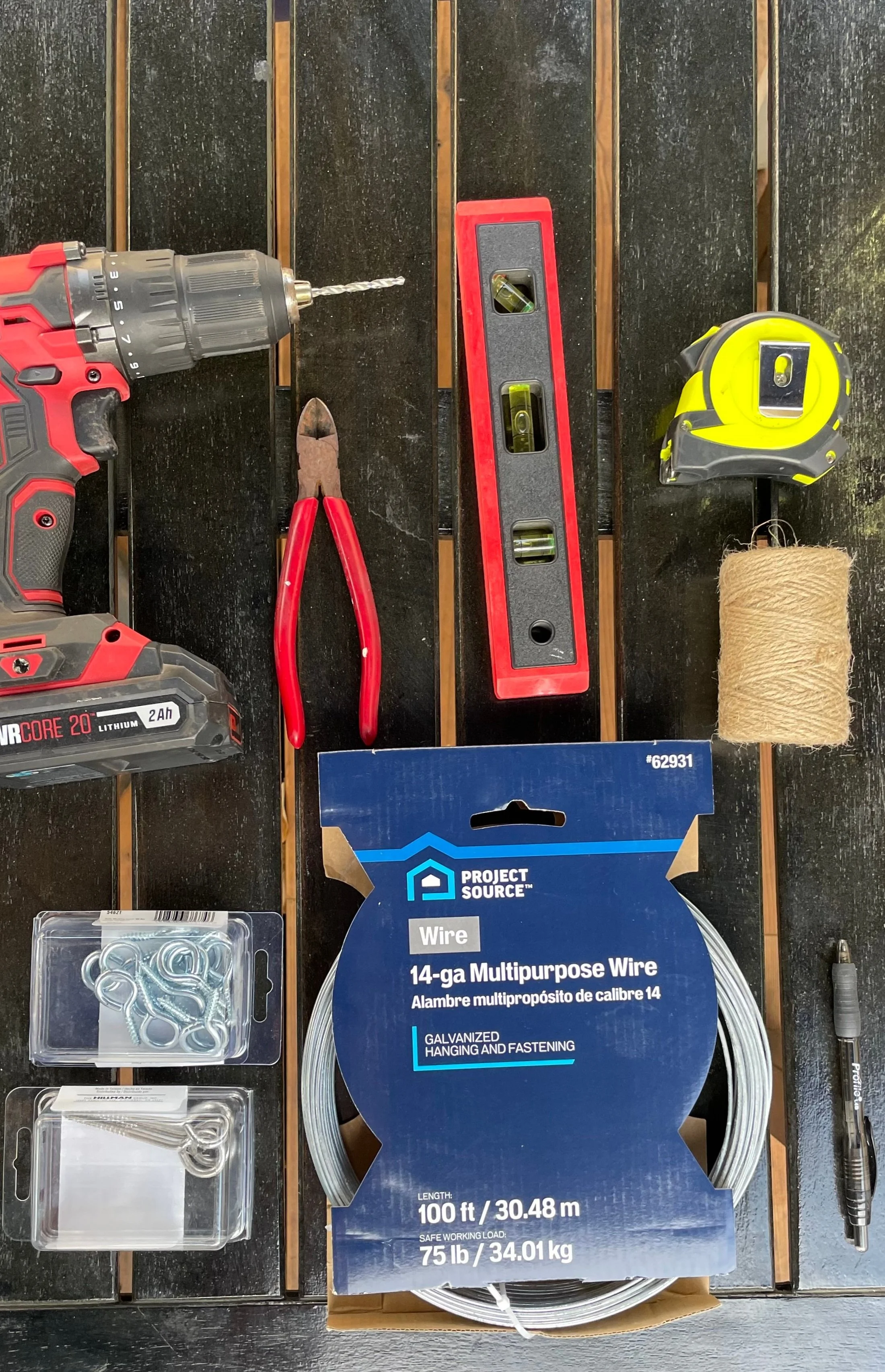 Cut the wire to length, thread it through the eye hooks, and twist the ends to secure. Pull the wire taut for a snug fit. Keep in mind that wire stretches over time, so you can always untwist and tighten later.