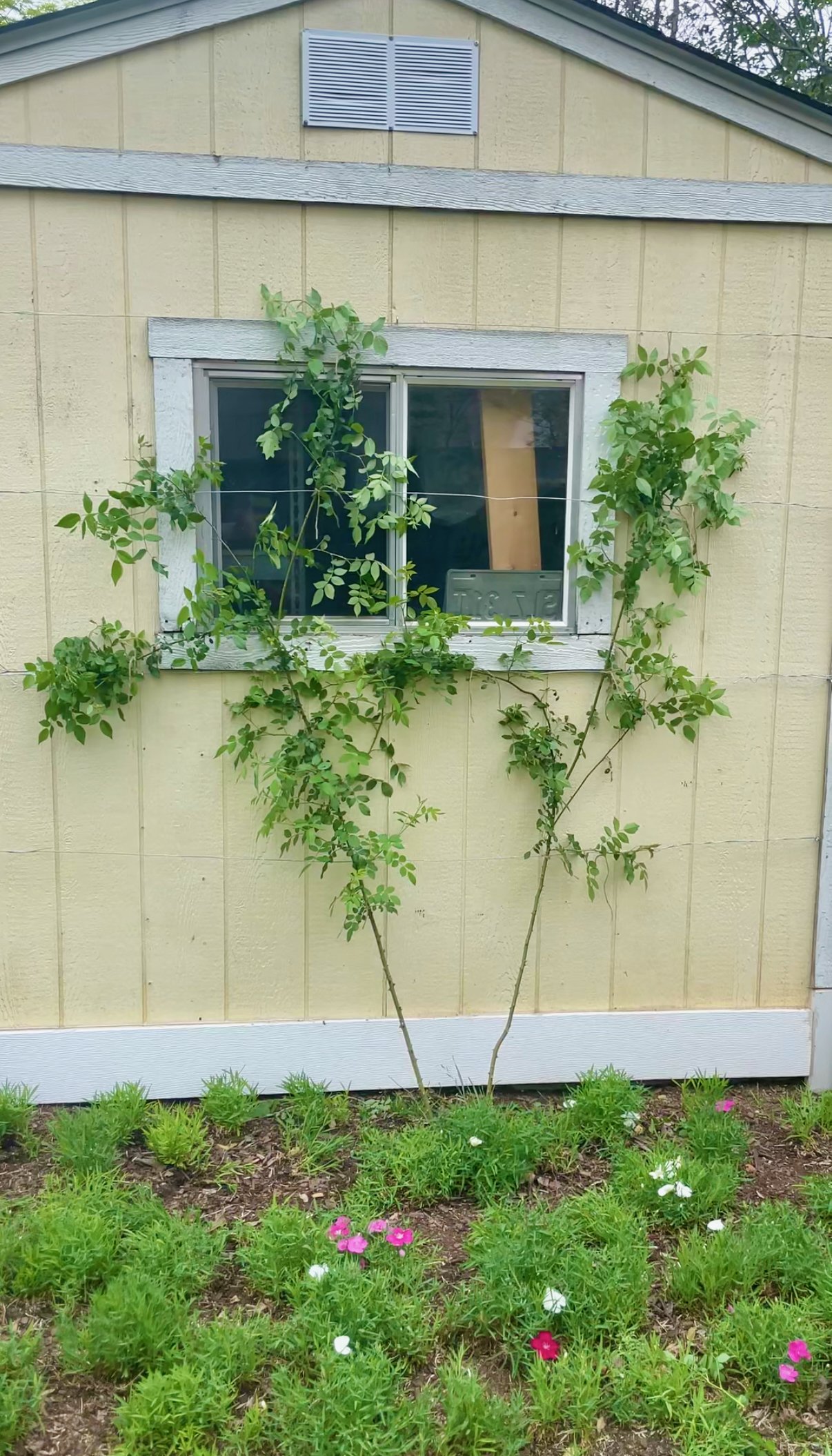 So I moved it out of the lawn and planted it against the new fence we had just built.