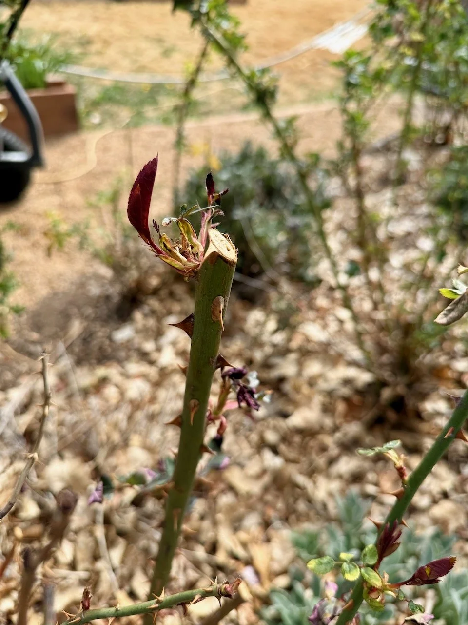 When a rose is pruned, the removal of that plant tissue tells the plant, “You need to grow more!” I mean, it is a little more complicated than that, but that’s the general message.
