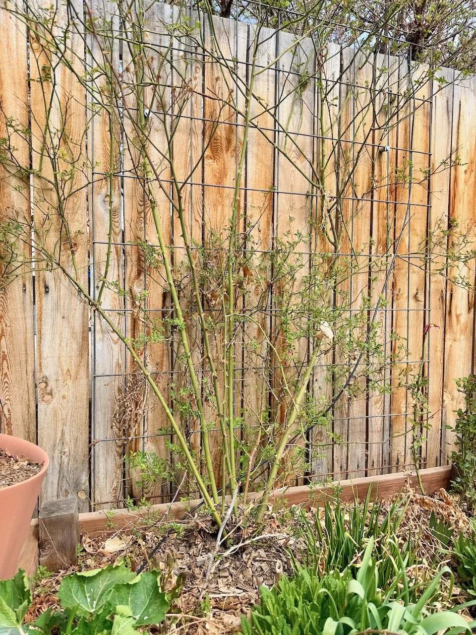 This does two things: it fully regenerates the entire plant and it gives you a chance as a gardener to shape the plant from the beginning — but with a healthy, established root system.