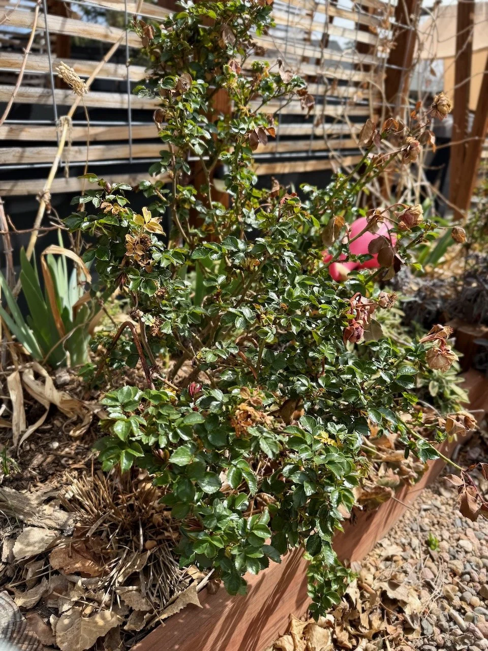 In the Mountain West including Colorado, it’s not recommended to prune roses until two weeks before your last frost date. This protects the health of the roses during our unpredictable spring cold snaps.