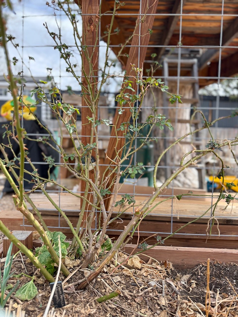 a rose that has been poorly pruned or trained in the past