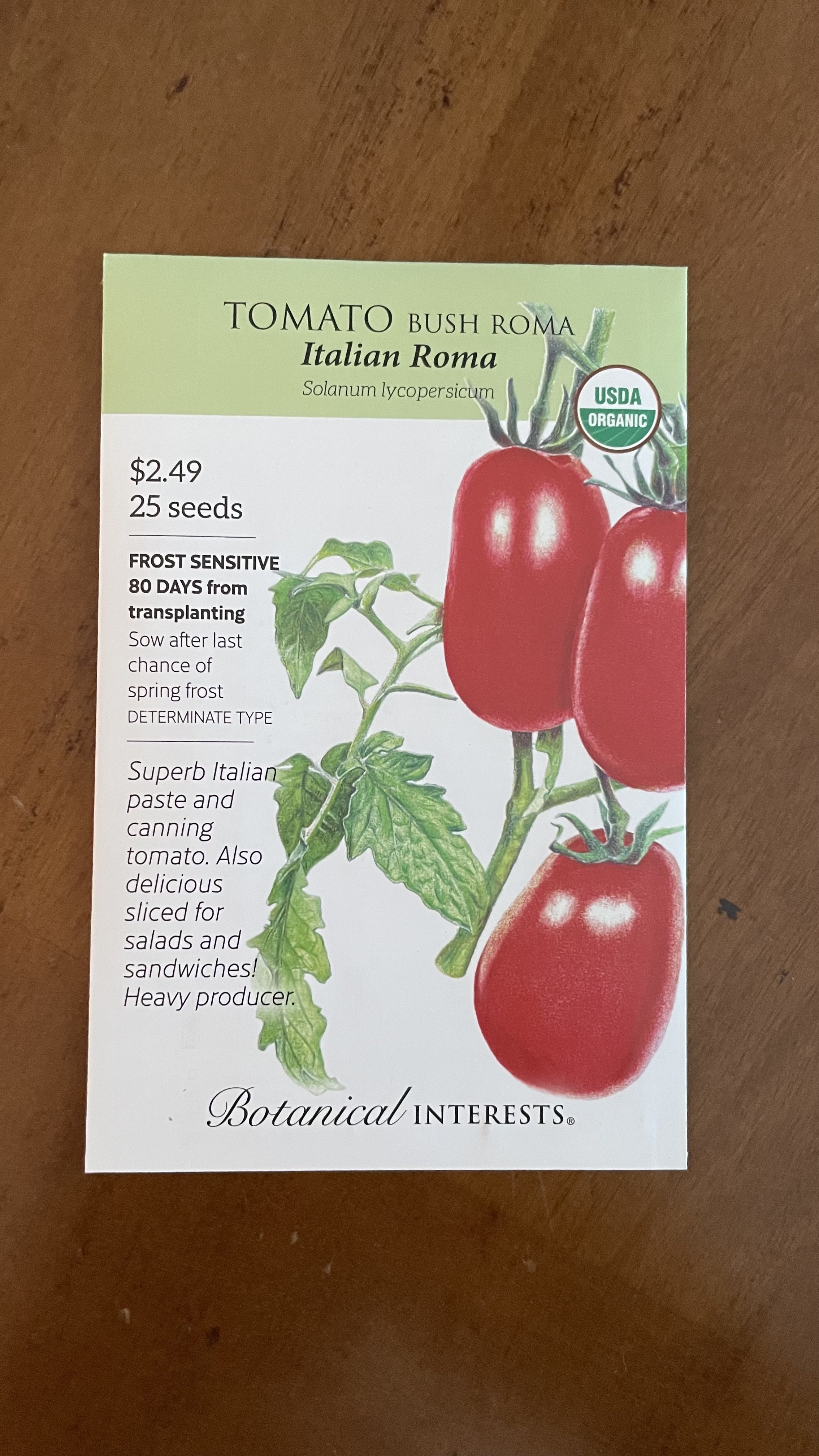 This is another variety that is a pretty stereotypical Italian-style tomato. But I am here to warn you: they are very thirsty. Romas aren't actually an Italian tomato. They are an American cross between the San Marzanos and Red Top, and they were developed for commercial growers so that they would have a long shelf life. They preserve really well, and they make good sauces.