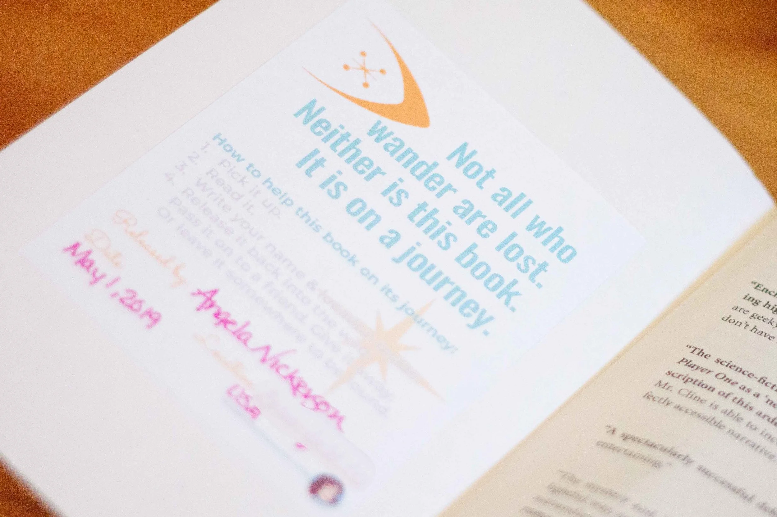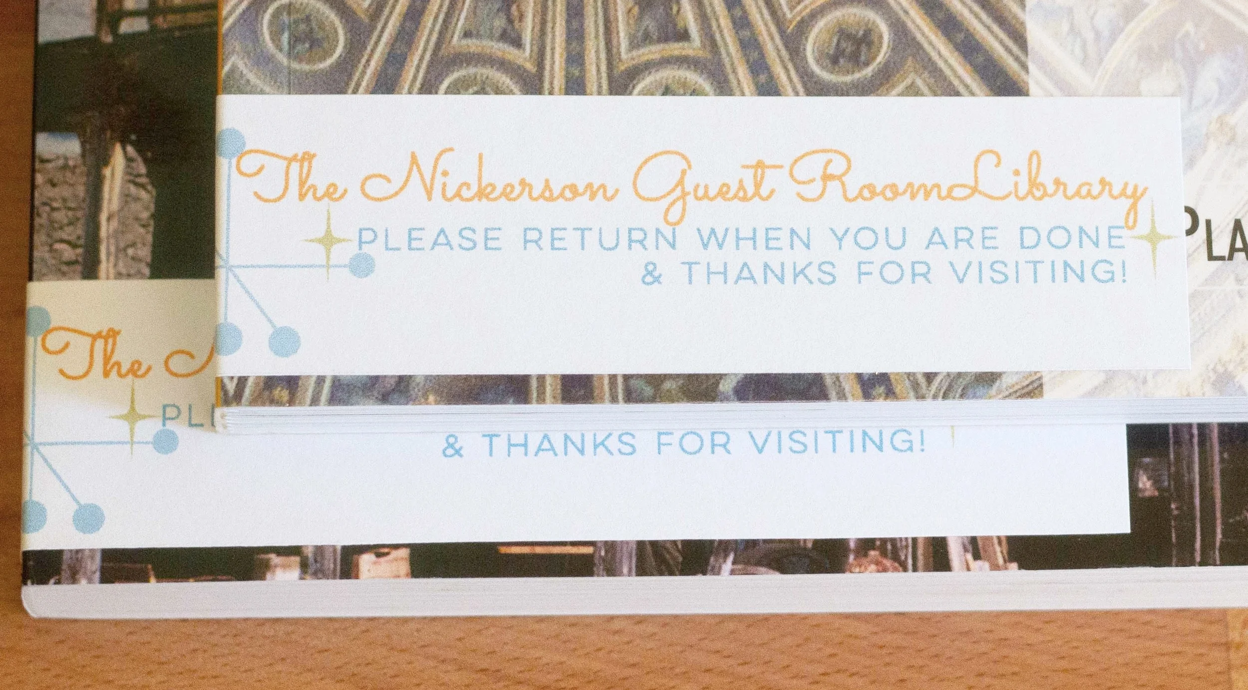 We have also stocked our guest room with books guests can take with them. These are books we have read and don’t need in our library anymore. I created a sticker for these books, too, indicating that they can be taken home and don’t need to be returned. Set them free and journey on!