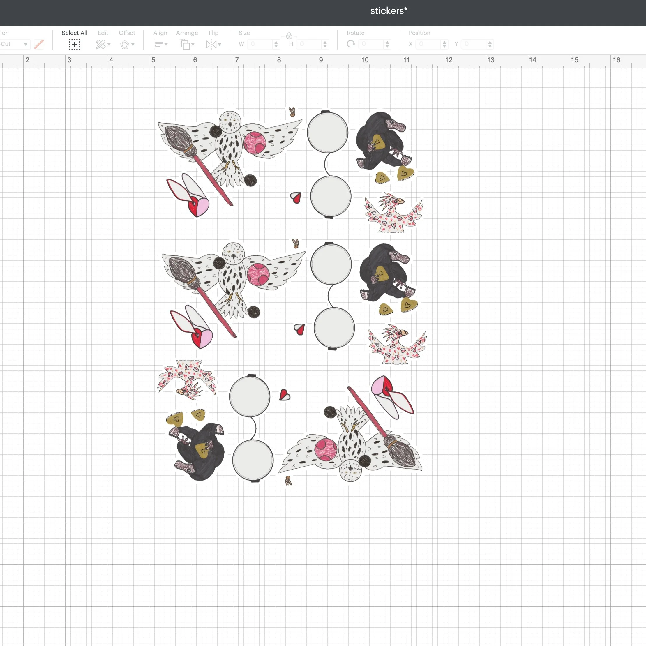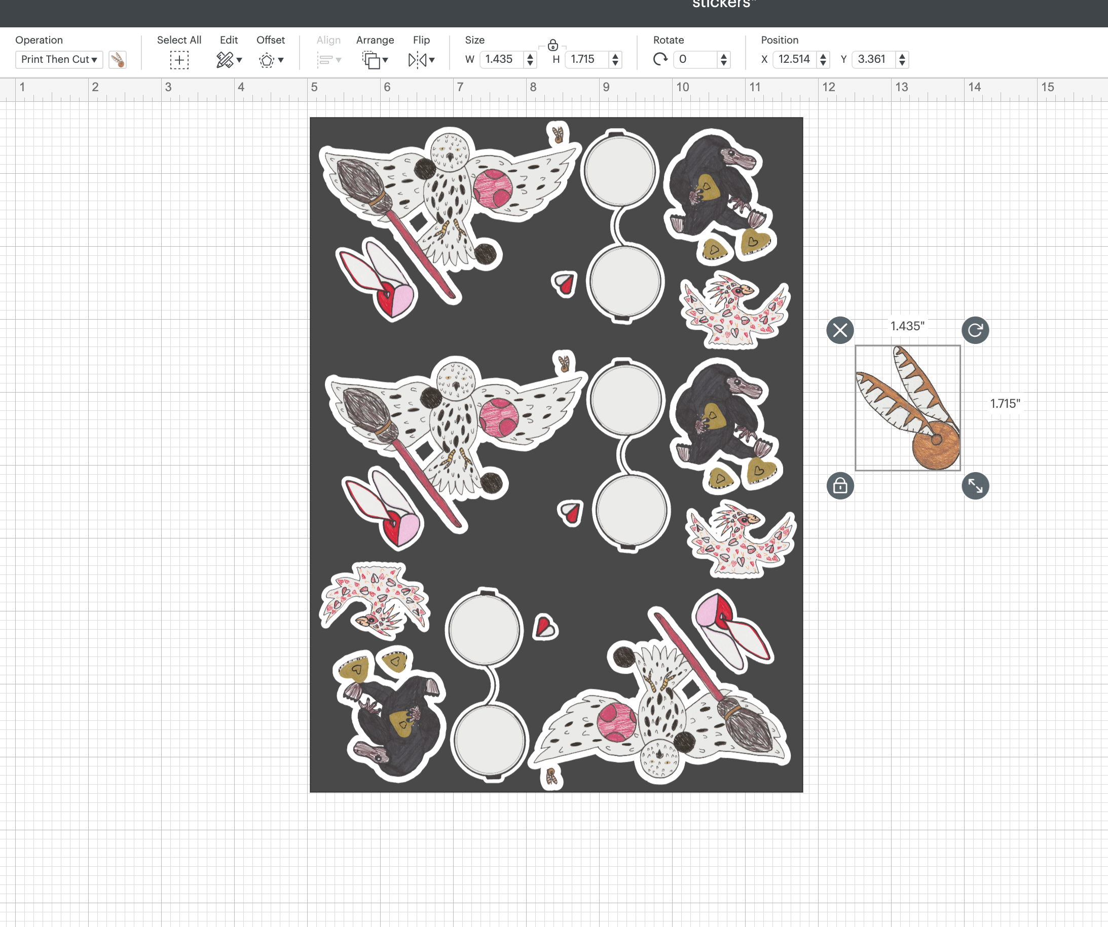 For each sticker design desired, repeat steps 1-3 until all stickers are imported into the Design Space, edited, and have an offset applied.