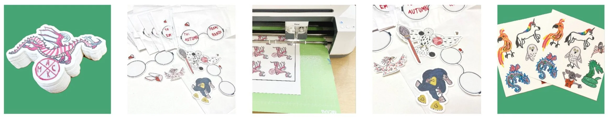 Kids love stickers — and they really love stickers that they have designed and made themselves! In our house, my child is a prolific artist, and when we need party favors, Valentines for his class, and other gifts, we make stickers. Using the Cricut print-and-cut system makes custom stickers simple, and with a child’s artwork, the process is quite easy. Of course, this is the same process you can use to make stickers with your own logos or designs. No matter what kind of artwork you are using, making print and cut stickers is simple and fun!