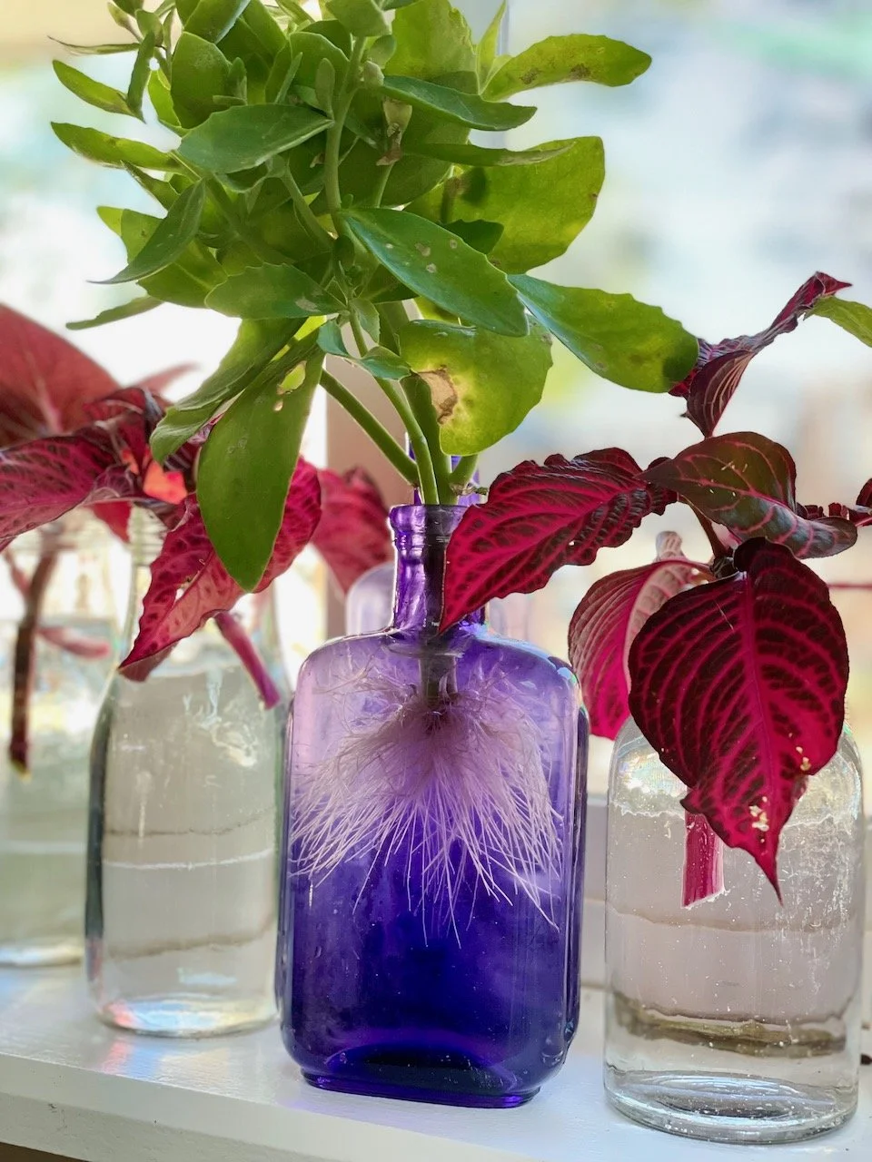 Plant cuttings started on my kitchen window — we need a greenhouse, pronto!