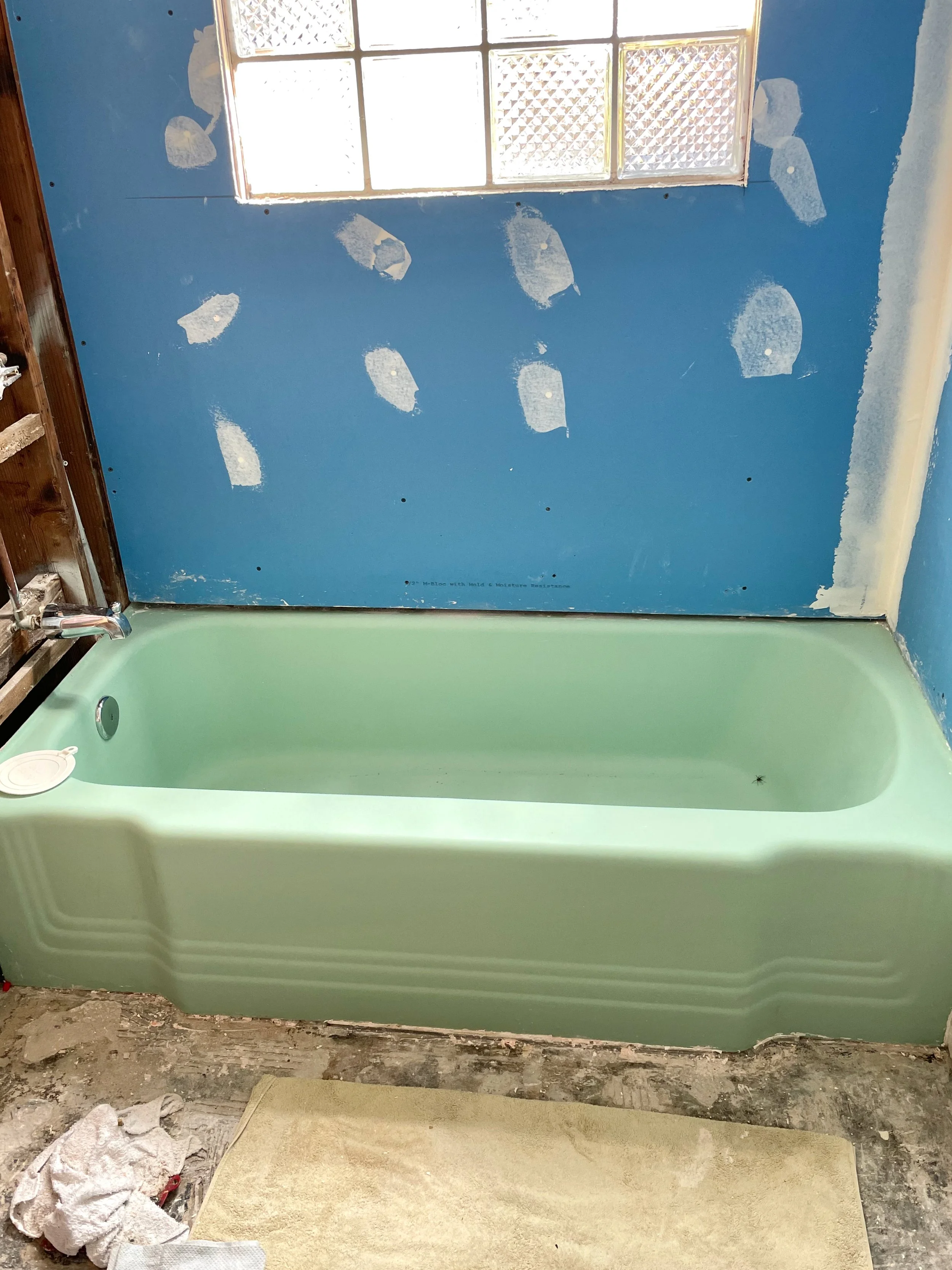 I will write up a whole how-to guide for restoring a vintage tub, because while it took a LONG time, I do think it was time well spent. And I learned a LOT of tricks and tips along the way. But the bathtub is now truly green and almost pristine. I got all of the rust spots off as well as every scratch, and I used a variety of methods to do it all including several boxes of baking soda!