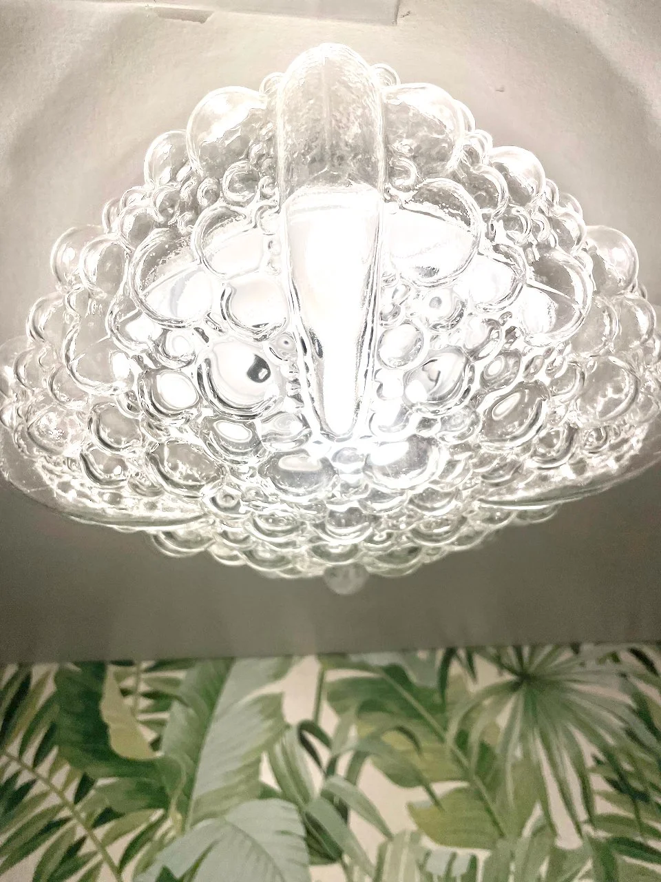 I had several other small projects this week, but the biggest was rewiring the vintage bubble fixture and installing it in the bathroom. If you have never rewired a fixture before: honestly, it sounds much harder than it is. A ceiling mount light like this one is particularly easy. I used a kit which made it a quick project, and it looks fabulous in the bathroom. I’ll use the second one upstairs when the time comes. It is rewired and ready to go.