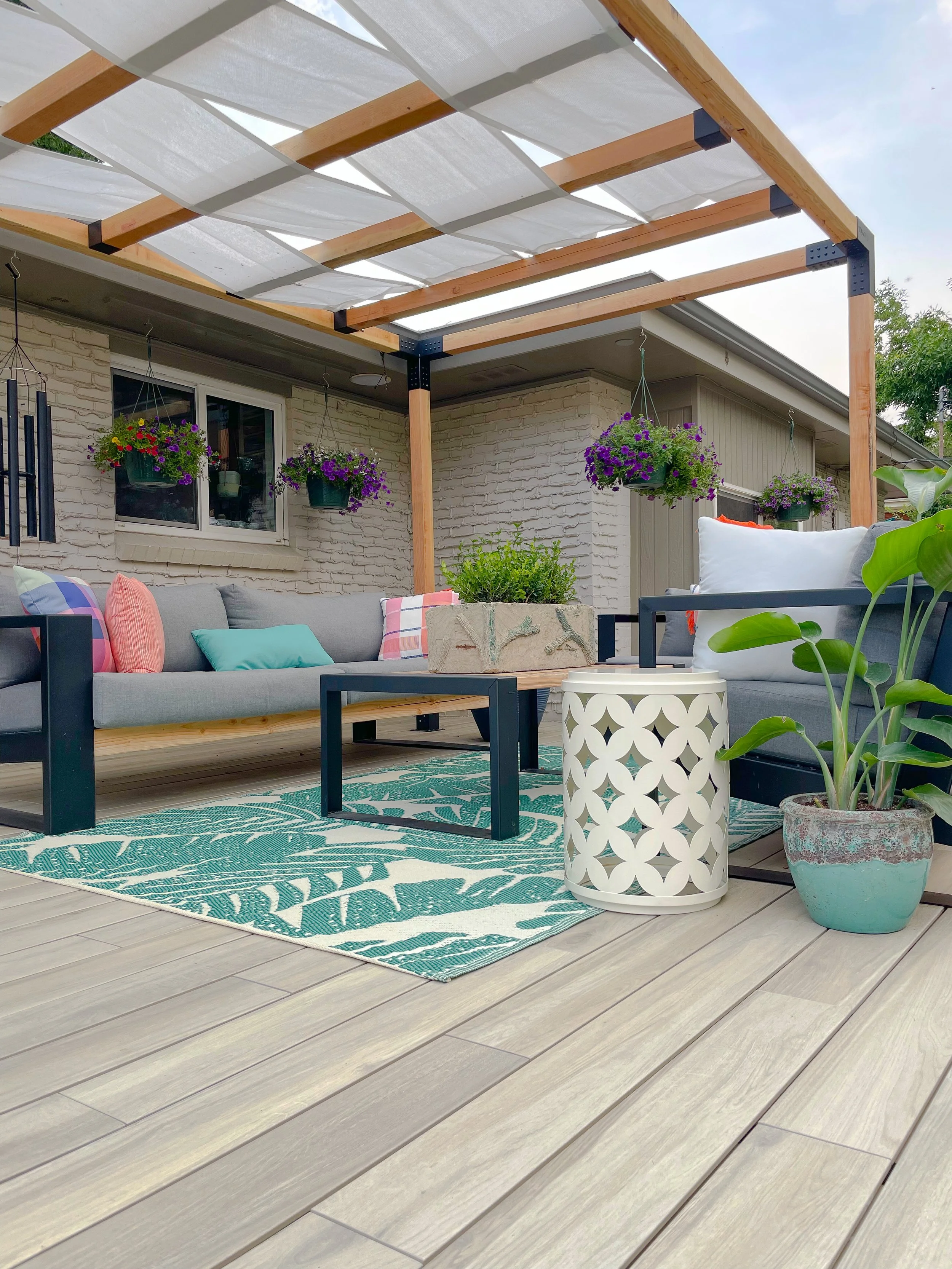 I did extensive research, trying to find the best DIY deck materials for this project. With everything we do, we look for materials that are durable, low-maintenance, and budget-friendly. After all, if you are going to build a deck, you want it to last for a long time, to be beautiful, and to be relatively low-maintenance.