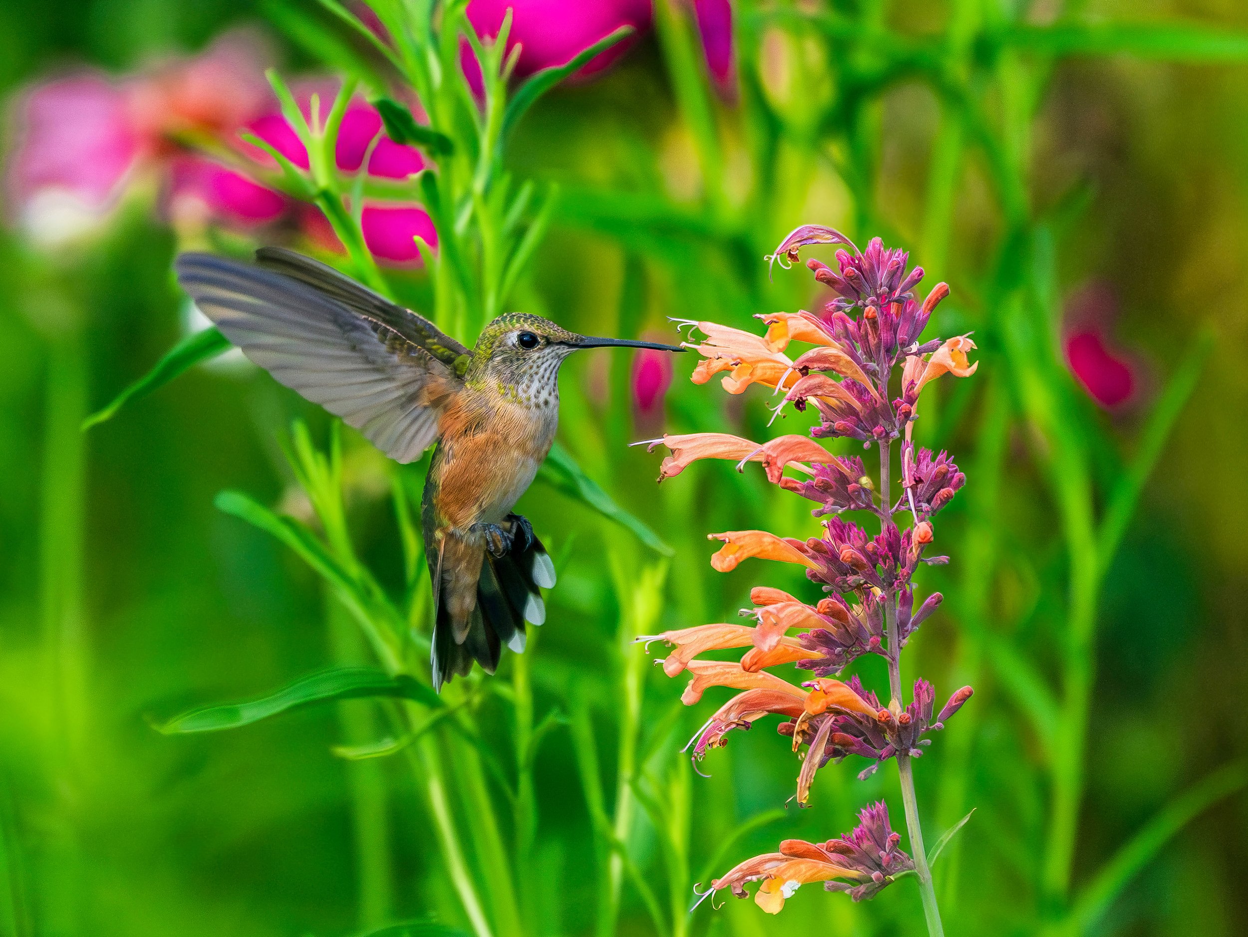 The plants of the Agastache genus produce nectar and pollen โ both important food sources for hummingbirds, native bees, butterflies, and other pollinators. And they have tube-shaped flowers which are critical for many insects with pointed mouth-parts.