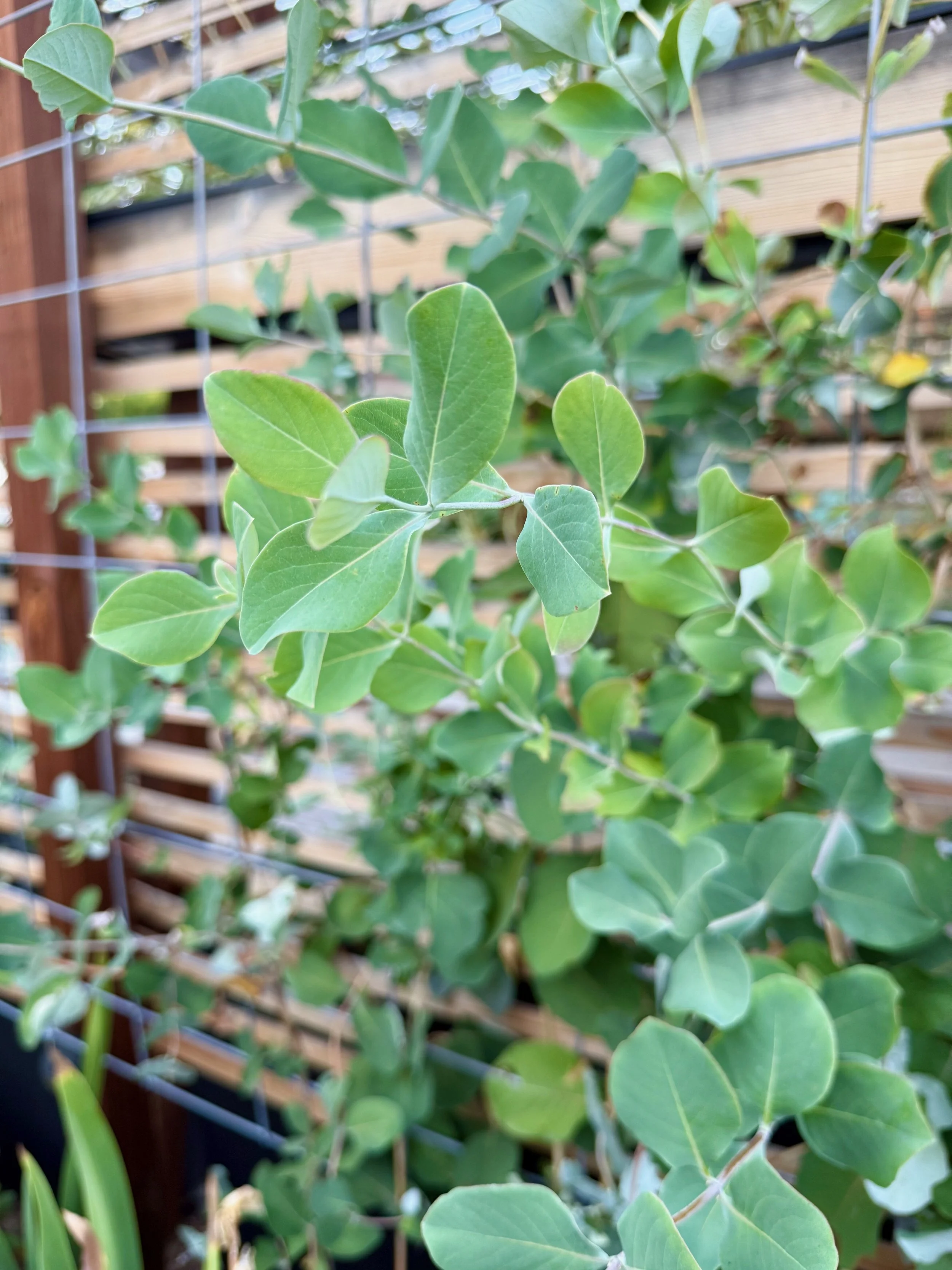 Now identified as an improved variety of Lonicera reticulata, Kintzley’s Ghost is a native North American honeysuckle with delightful habits. I planted four plants three summers ago, and while they have taken a long time to establish, this year has proven that they are worth the wait!