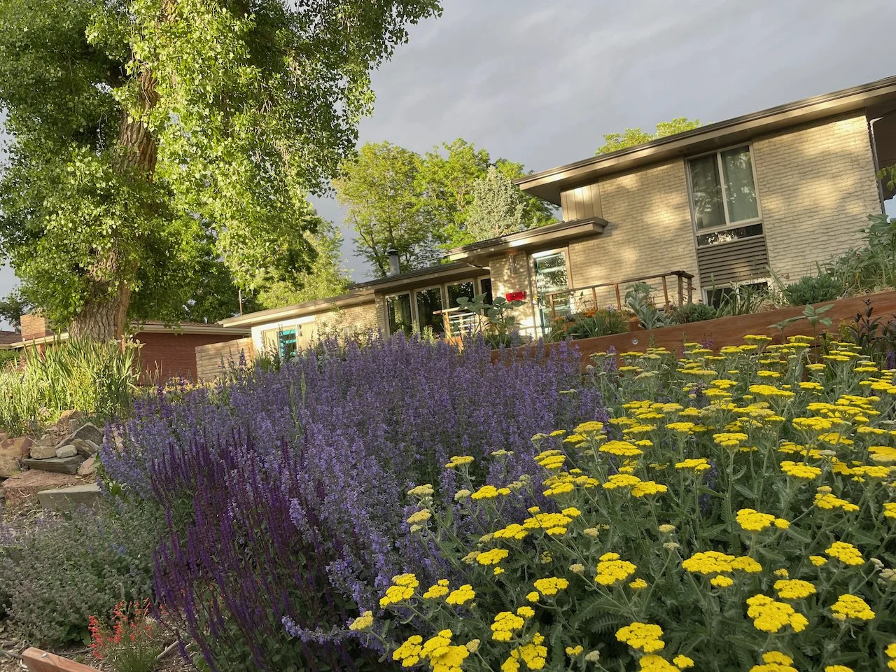 In my Wildlife Garden, I love the mounds of Nepeta contrasted with the yellow flowers of Achillea. They look beautiful together, and they are both covered with insects all summer long.