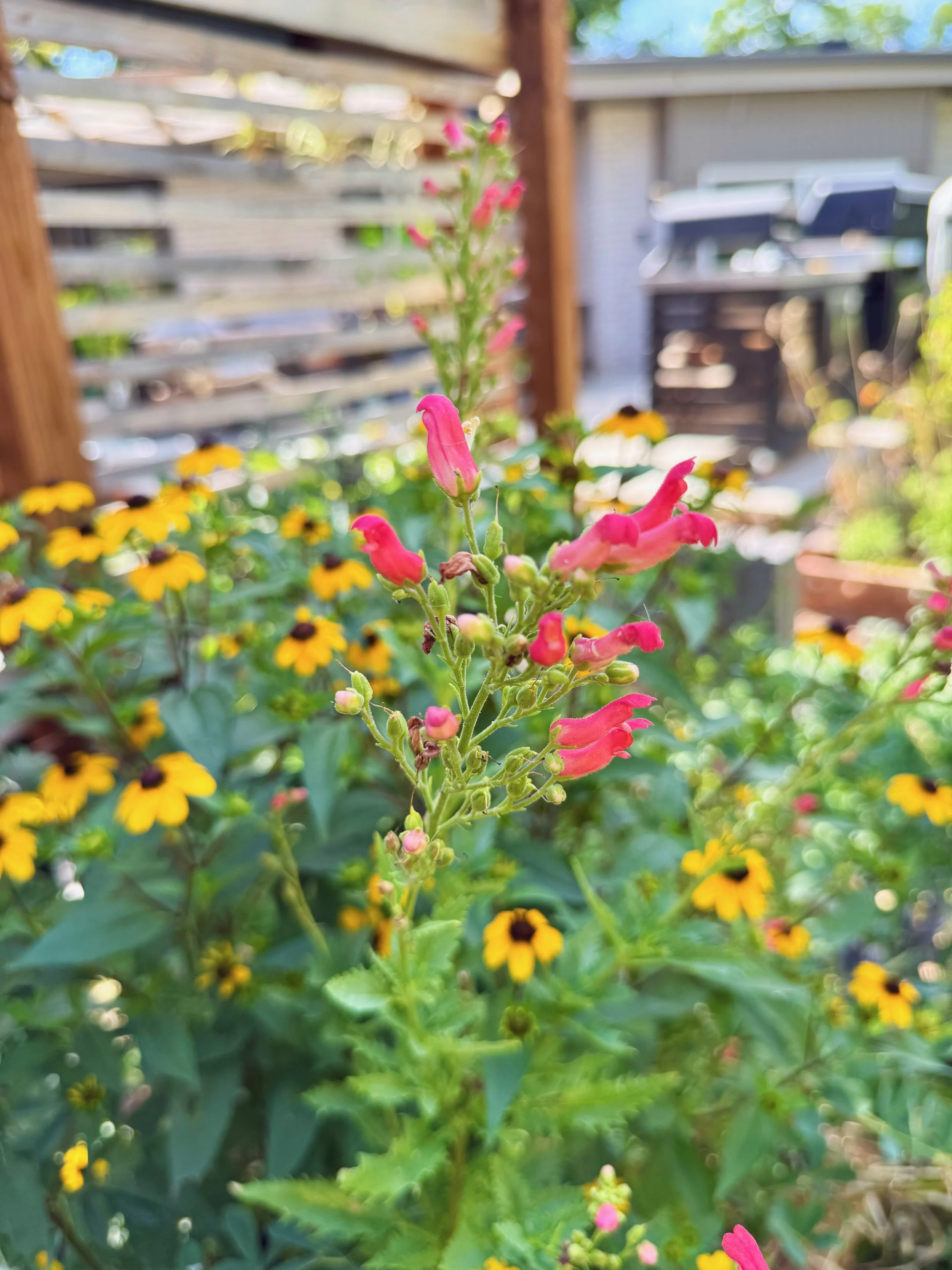 They were wee little plants, but I stuck them in a bed with some Hardy Geraniums and Baptisia australis. And I just watched… I chose them because the tag said they were great for hummingbirds, and that was not a lie!