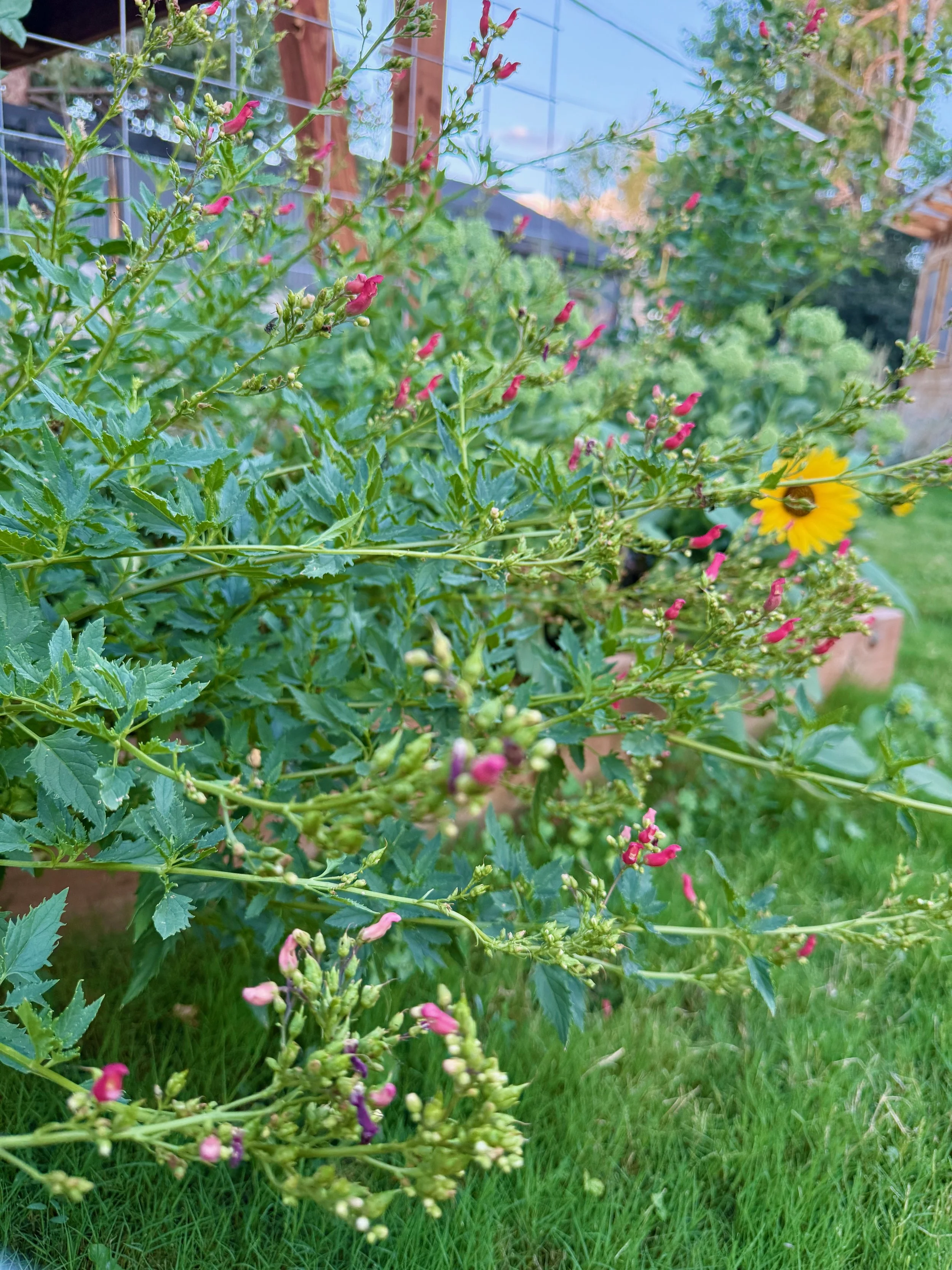 There is a delightful little garden center not too far from me, and it has the most unusual plants. It’s not the place to go for boring plants, nor is it the place to go for cheap plants. But when I need inspirational, unusual, or interesting plants — or just to have a good wander — that’s where I go. And a few years ago, on just such a trip, I found what is now my favorite plant: Scrophularia macrantha, poetically known as Red Birds in a Tree. Since I had never heard of it, I only bought three plants.