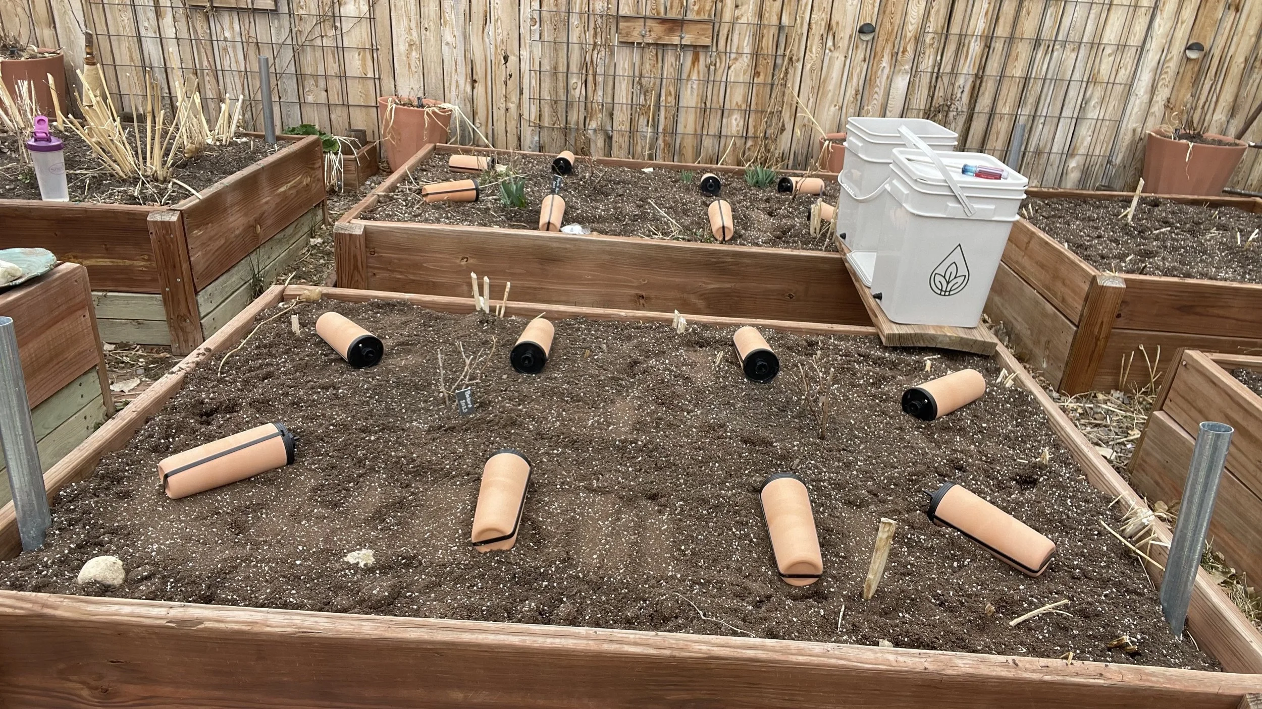 Ollas: I use ollas in many of my raised beds! They are a fabulous, low-maintenance way to keep your plants watered, and they are incredibly waterwise, too. Check out my guide to watering with ollas here.