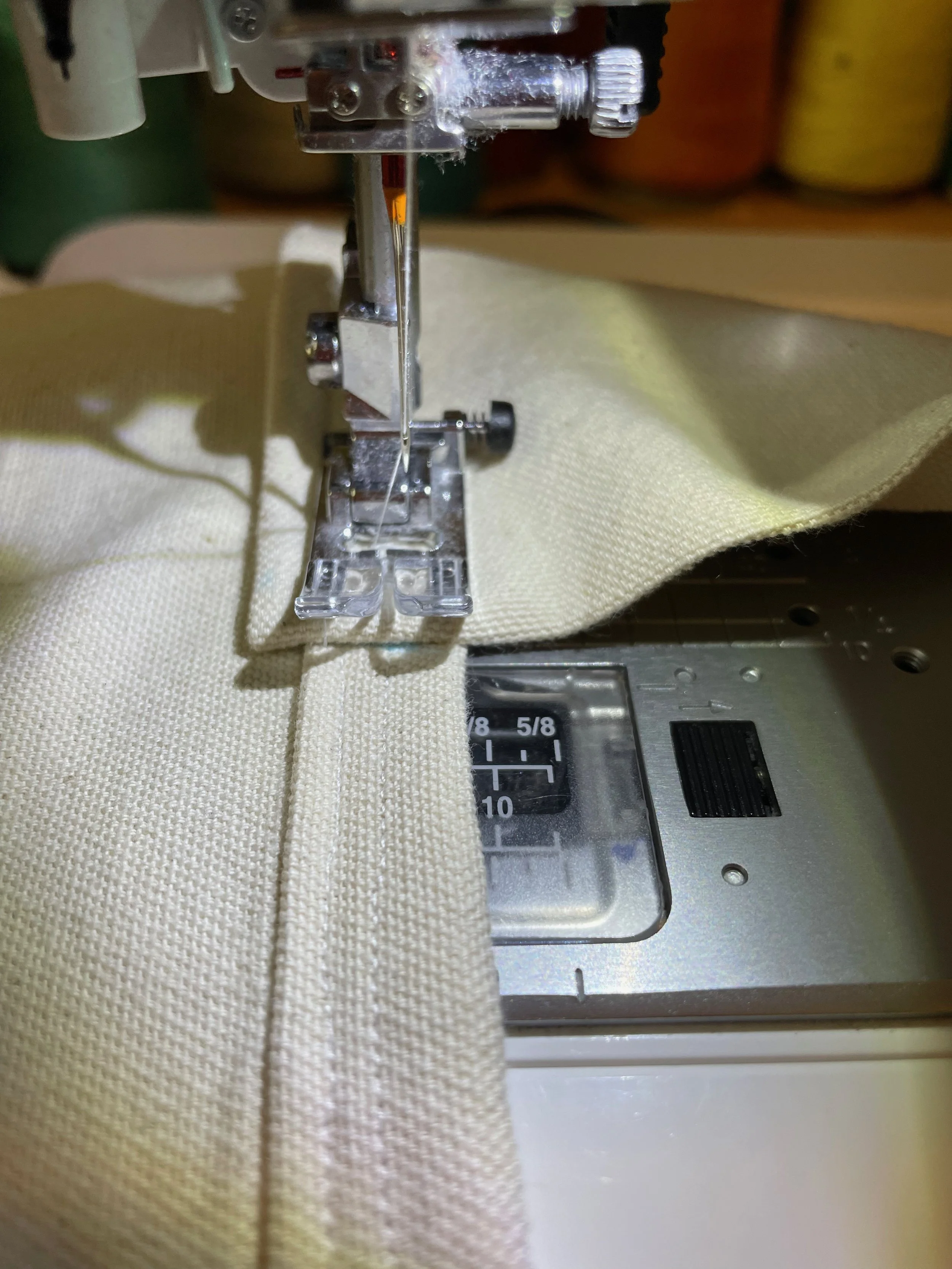 Double-check that your straps aren’t twisted, then stitch them into place. I did a double row of stitching to make sure they held well.