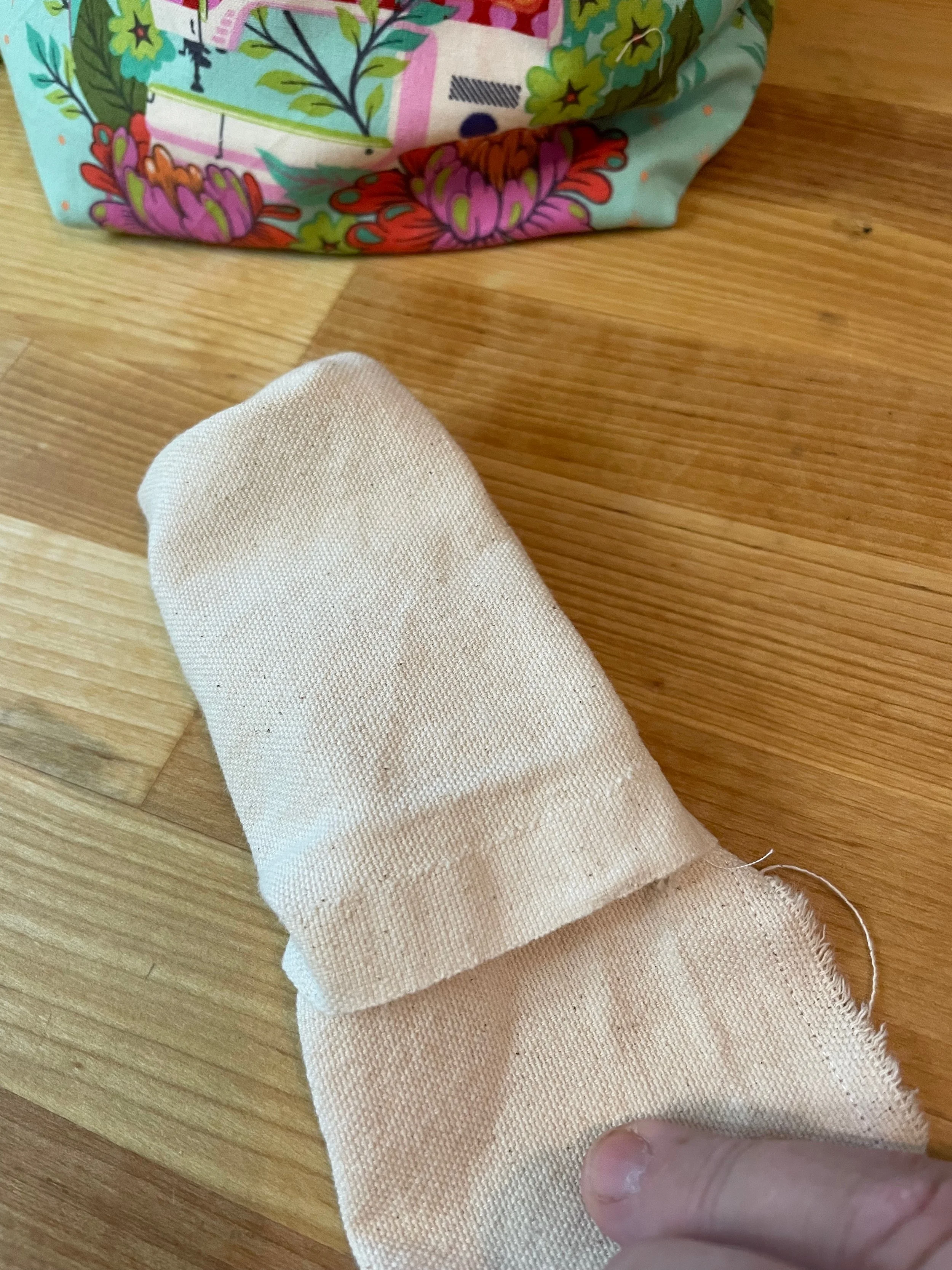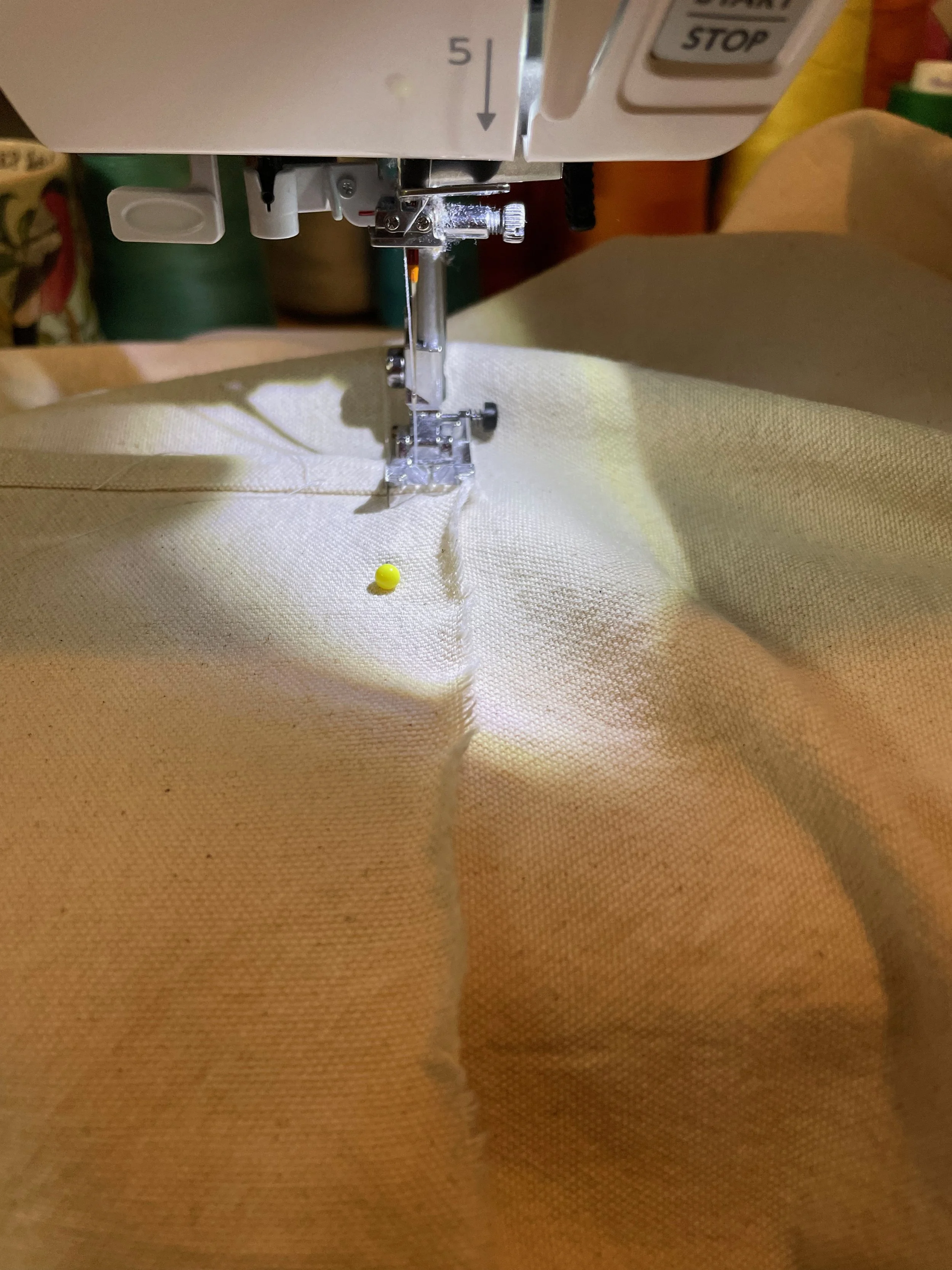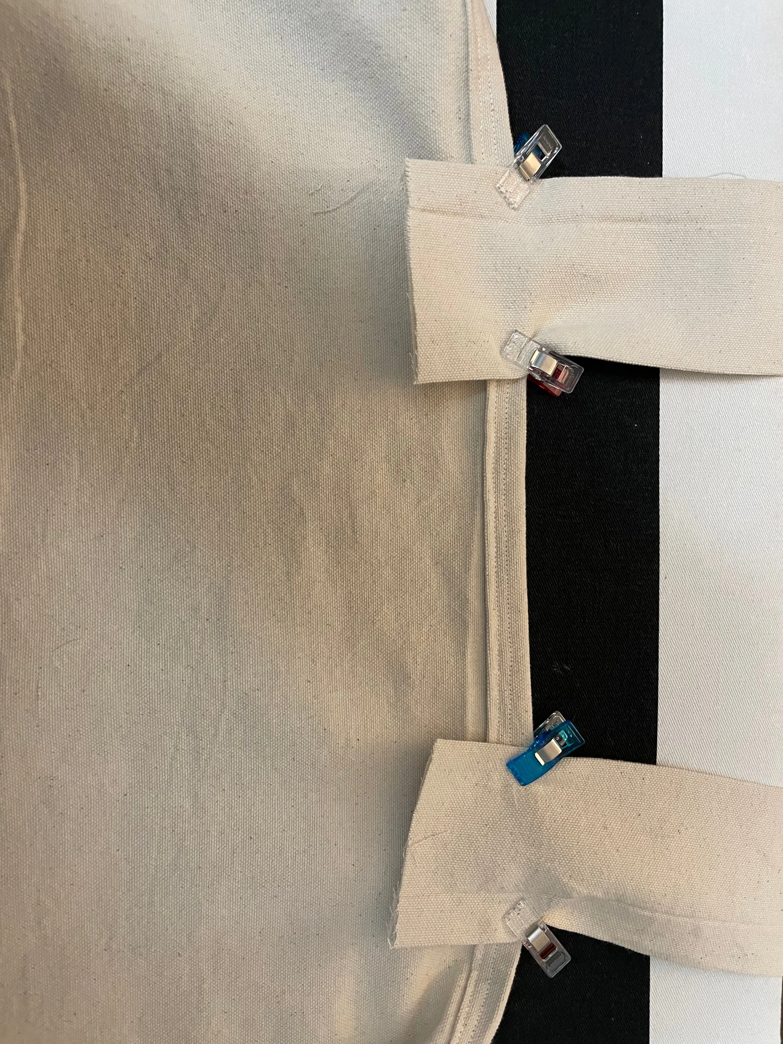If you also folded the fabric under the arms, now is the time to stitch that down as well.