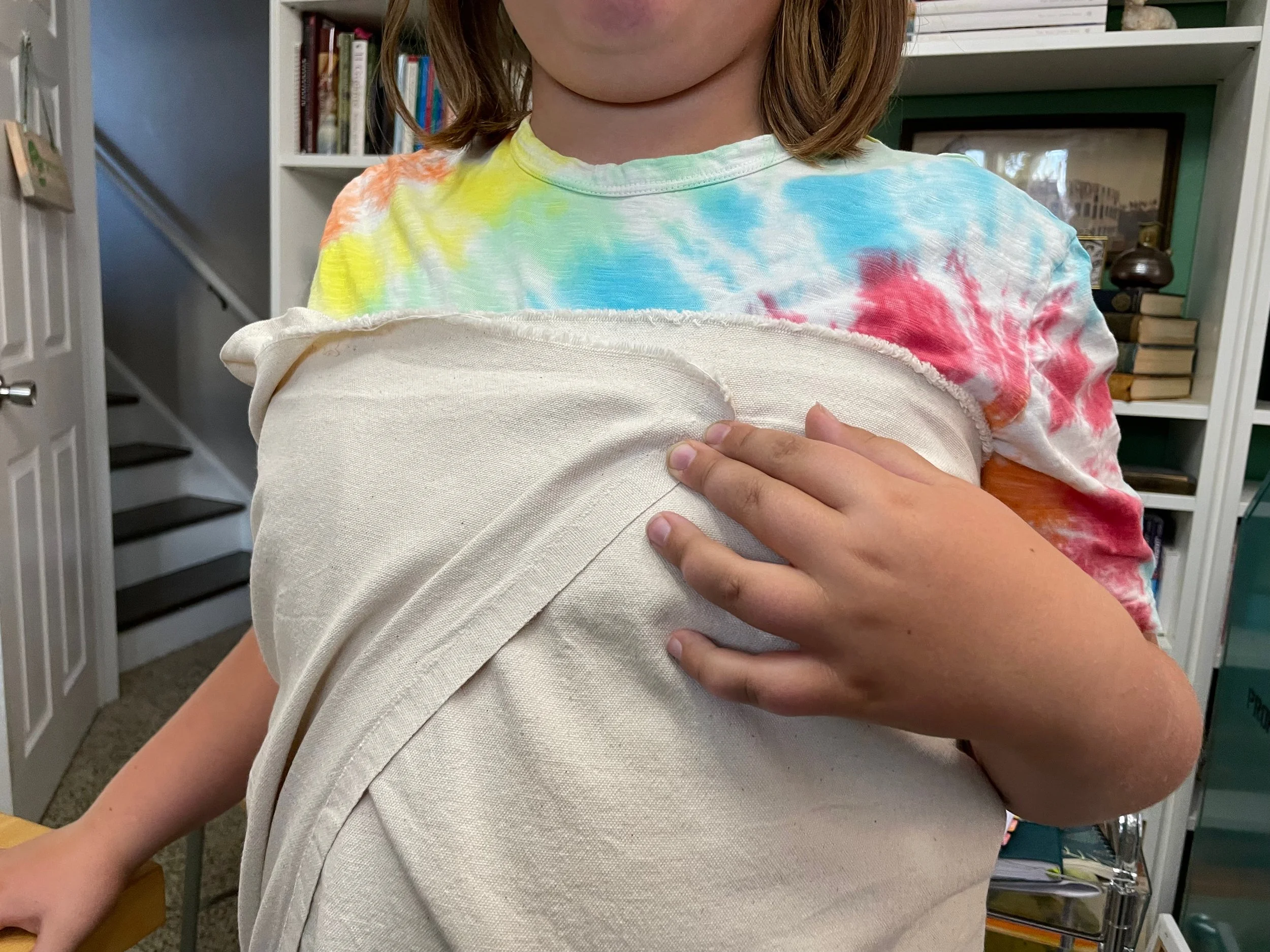This step is optional, but for those of us who are a little more buxom, that straight-across cut may be problematic underneath the arms. There’s an easy fix, however, if you find there’s too much fabric under the arms, and it all gapes.