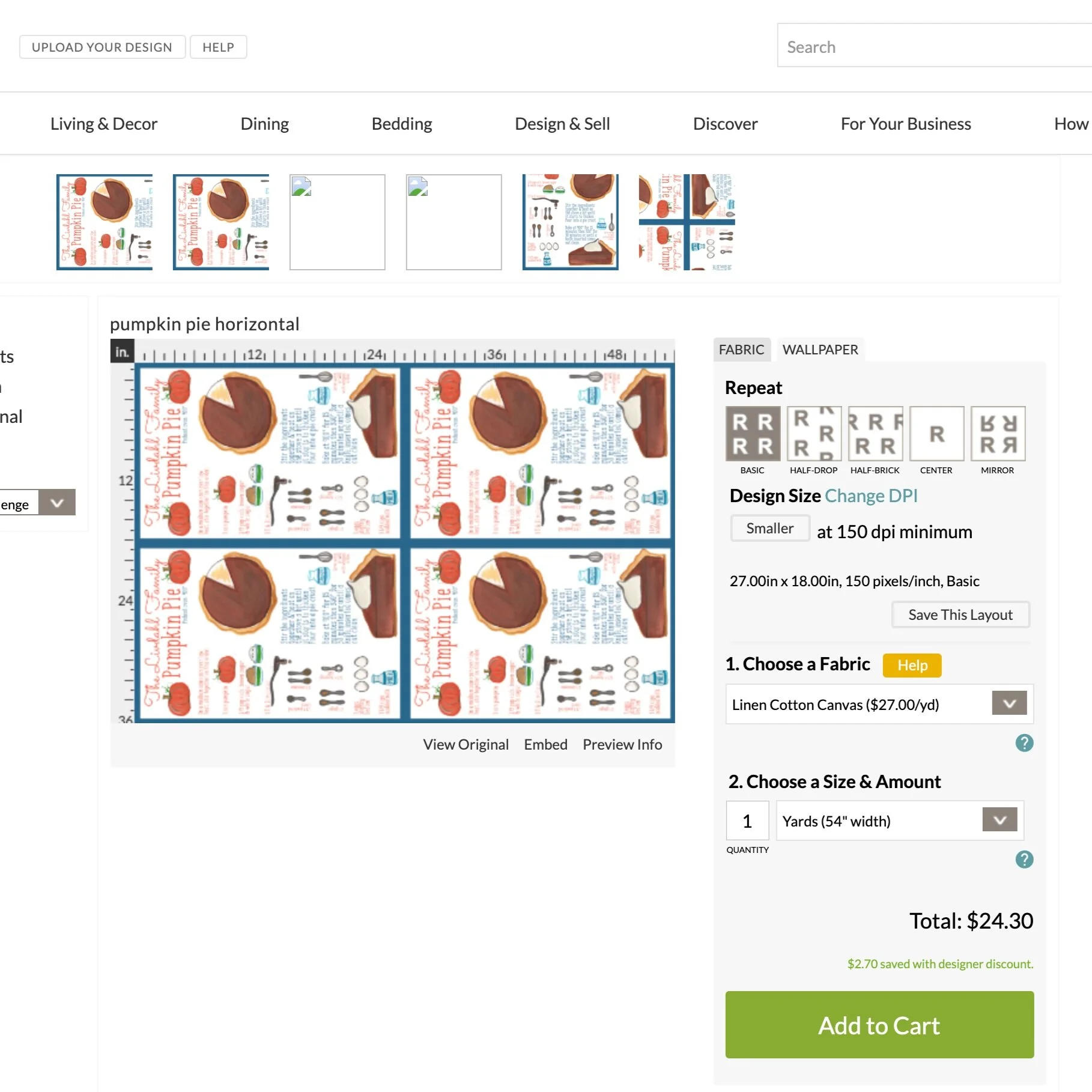 Go to the Spoonflower website and LOG IN or create an account. The options outlined in this process are NOT available unless you are logged in.